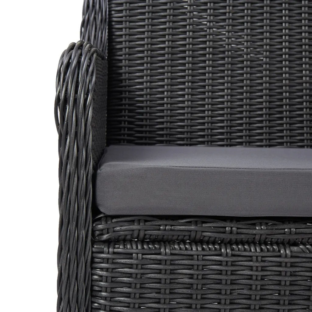 Posiadający solidną, stalową ramę, owiniętą odpornym na warunki atmosferyczne, ręcznie plecionym rattanem PE zestaw jest odporny na rdzę oraz pleśń, co zapewnia długie lata komfortowego użytkowania. Komplet jest dostarczany z wygodnymi, grubo wyściełanymi poduszkami na siedziska, które zapewnią wyjątkową wygodę. Wyposażone w suwaki, poliestrowe powłoczki są łatwe w utrzymaniu w czystości, gdyż można je bez problemu zdjąć i wyprać. Co więcej, blat stolika z czarnego szkła jest łatwy w czyszczeniu przy pomocy wilgotnej ściereczki.