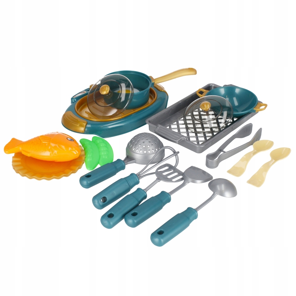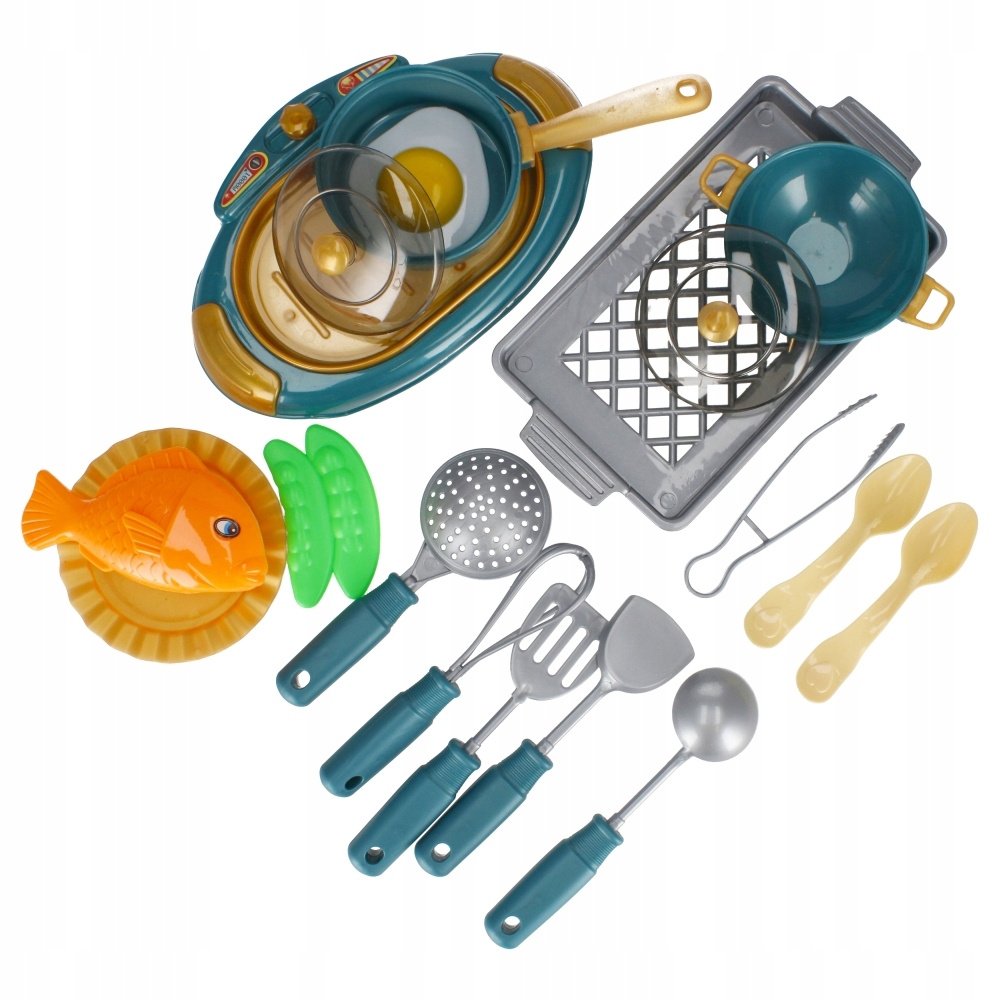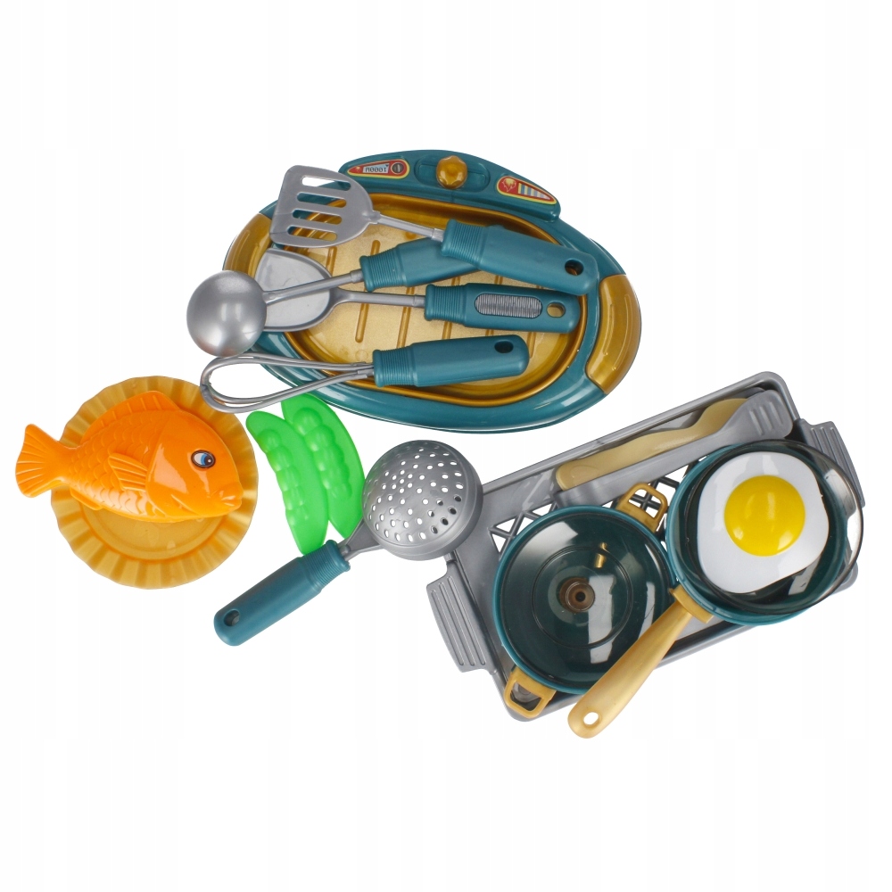 Zalety produktu: rozwija zdolności poznawcze, kreatywność dziecka. Twoje dziecko najlepiej uczy się poprzez zabawę. Zachęcając je do niej, przyczyniasz się do rozwoju jego kreatywności, zmysłów i zdolności poznawczych. Zestaw kuchenny MEGA CREATIVE będzie doskonałym uzupełnieniem każdej dziecięcej kuchni Zawartość zestawu: kuchenka, taca, wok z pokrywka, patelnia z pokrywka, 2x talerz, 2x łyżka, jajko sadzone, ryba, fasolka zielona, 2x podbierak, chochla,, durszlak, szczypce. Całość wykonana z plastiku. Wszystkie produkty są imitacją prawdziwych Wymiary/waga/baterie: wymiary produktu dł. x wys. x gł. cm : -kuchenka 18x2x12,wymiar opakowania dł. x wys. x gł. cm : 24x26x5, waga produktu bez opakowania kg : 0,15 kg, waga produktu w opakowaniu kg : 0,17 kg, nie wymaga zasilania bateriami. Produkt przeznaczony dla dzieci w wieku: 3 . Zestaw pakowany w woreczek z zawieszką.