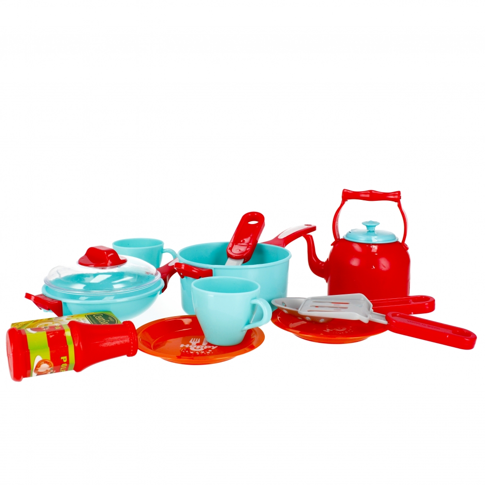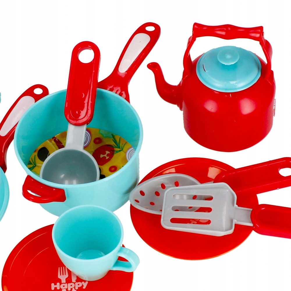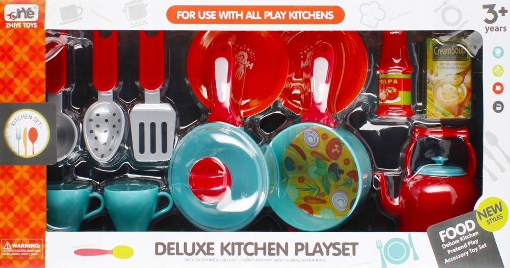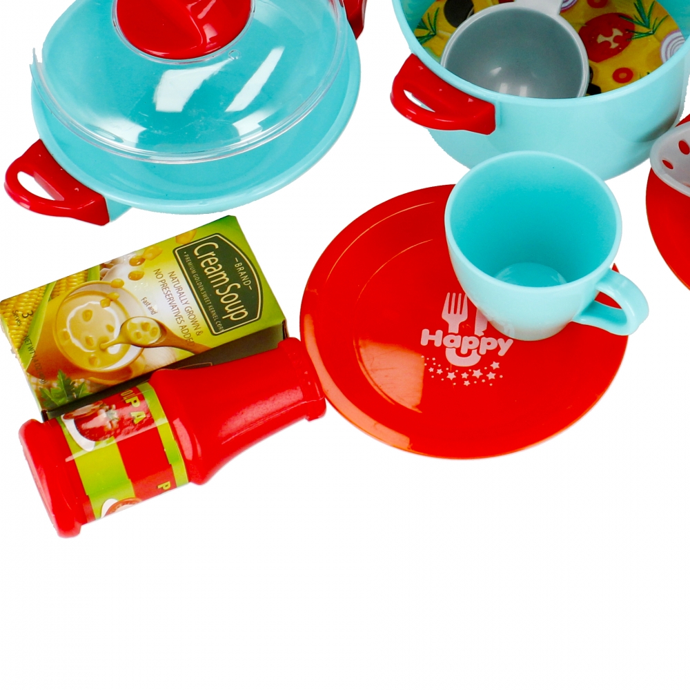 Rozwija zdolności poznawcze, kreatywność dziecka. Twoje dziecko najlepiej uczy się poprzez zabawę. Zachęcając je do niej, przyczyniasz się do rozwoju jego kreatywności, zmysłów i zdolności poznawczych. Zestaw kuchenny MEGA CREATIVE będzie doskonałym uzupełnieniem każdej dziecięcej kuchni Zawartość zestawu: czajniczek, 2x talerzyk, patelnia z pokrywką, garnek, 2x kubraczek, 2x podbierak, 1x chochla, ketchup, zupa-krem w proszku. Całość wykonana z plastiku i kartonu. Wszystkie produkty są imitacją prawdziwych