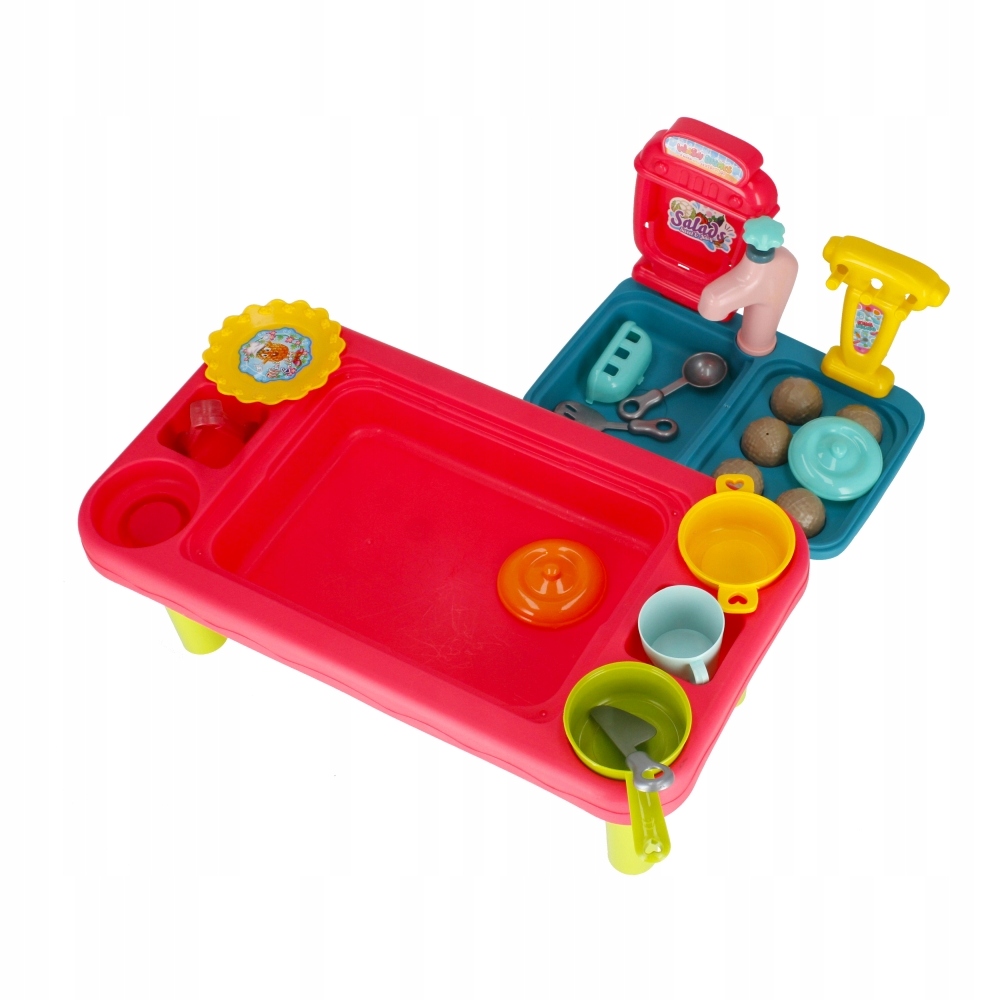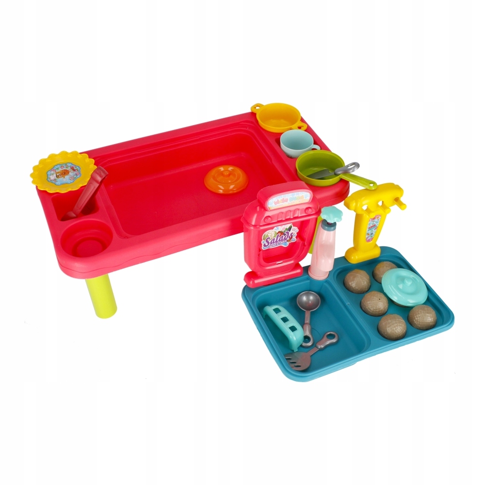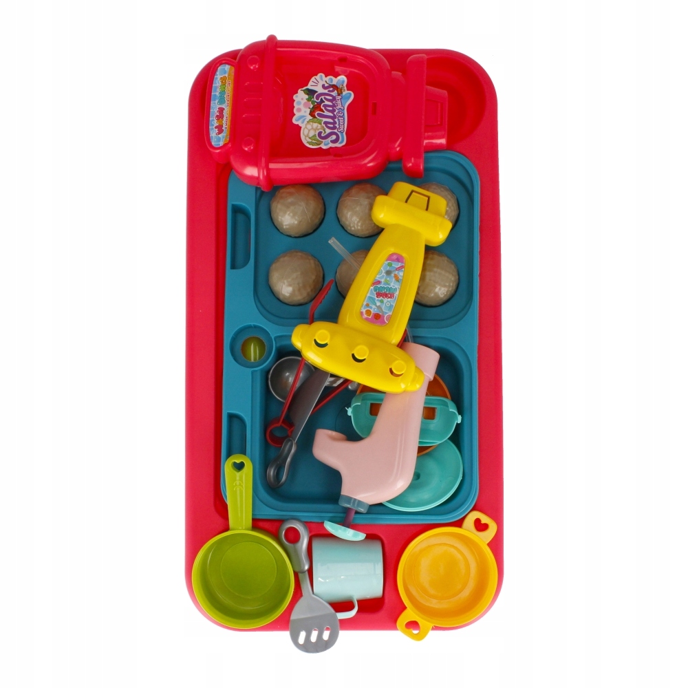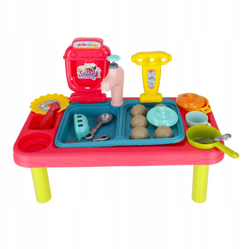 Kuchnia posiada wszystko, czego mali kucharze potrzebują do przygotowania pysznych potraw: kuchenkę oraz niezbędne akcesoria kuchenne i produkty spożywcze, garnki, sztućce, kuchnia posiada zlew z kranikiem, po napełnieniu wodą zlewu z kranu poleci woda, w której możesz zmyć brudne naczynia czy umyć produkty przed przygotowaniem pysznych potraw.