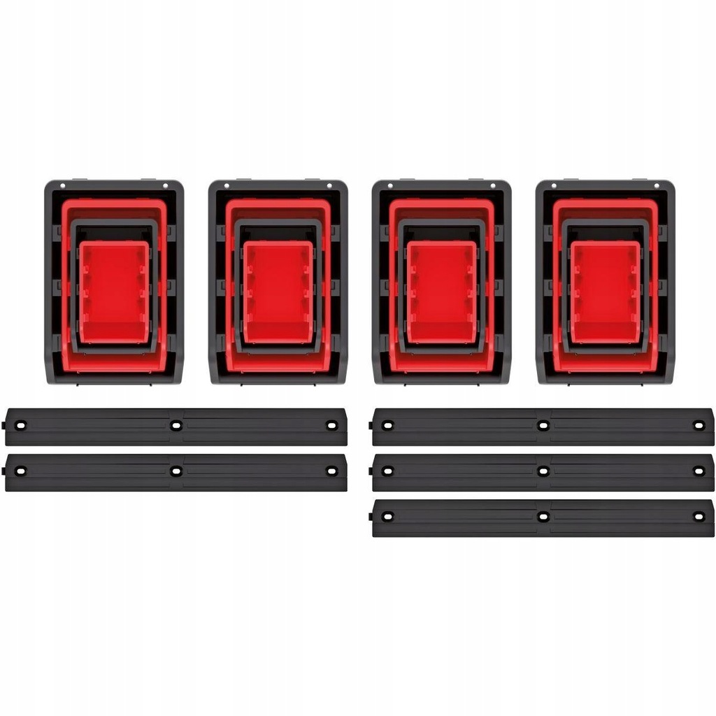 - W zestawie: 5 listew montażowych, 16 pojemników warsztatowych.