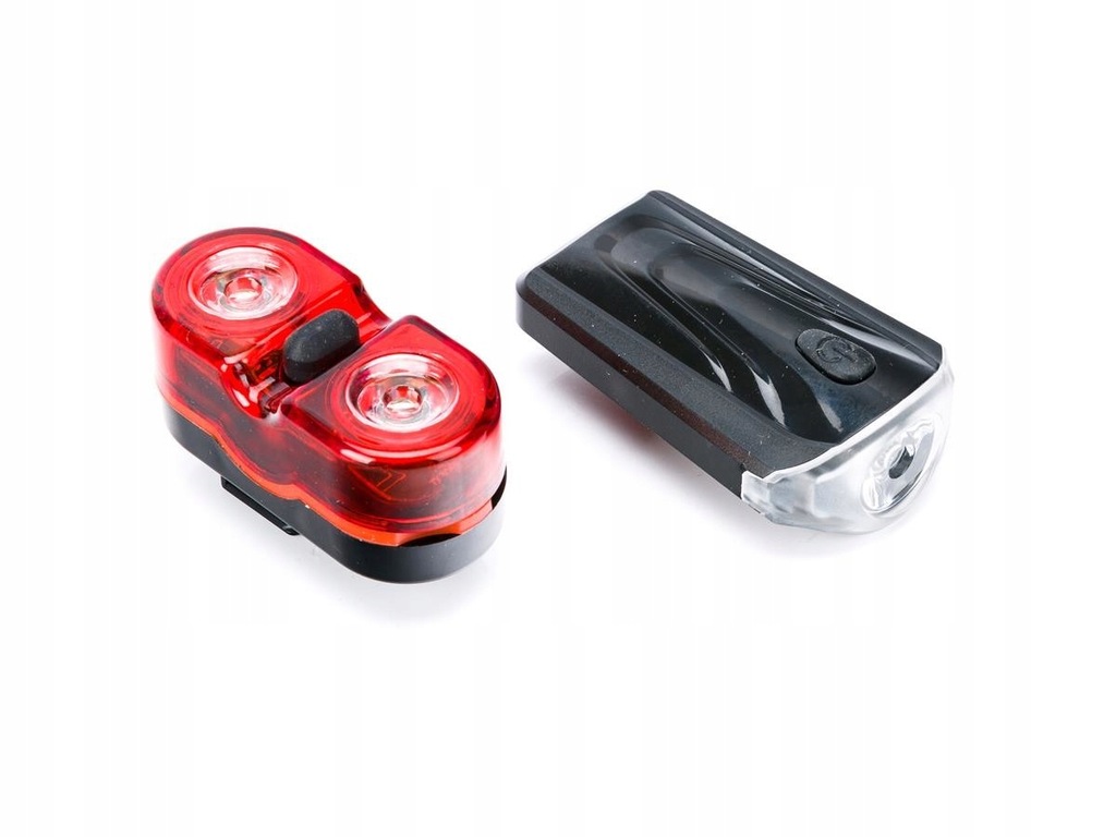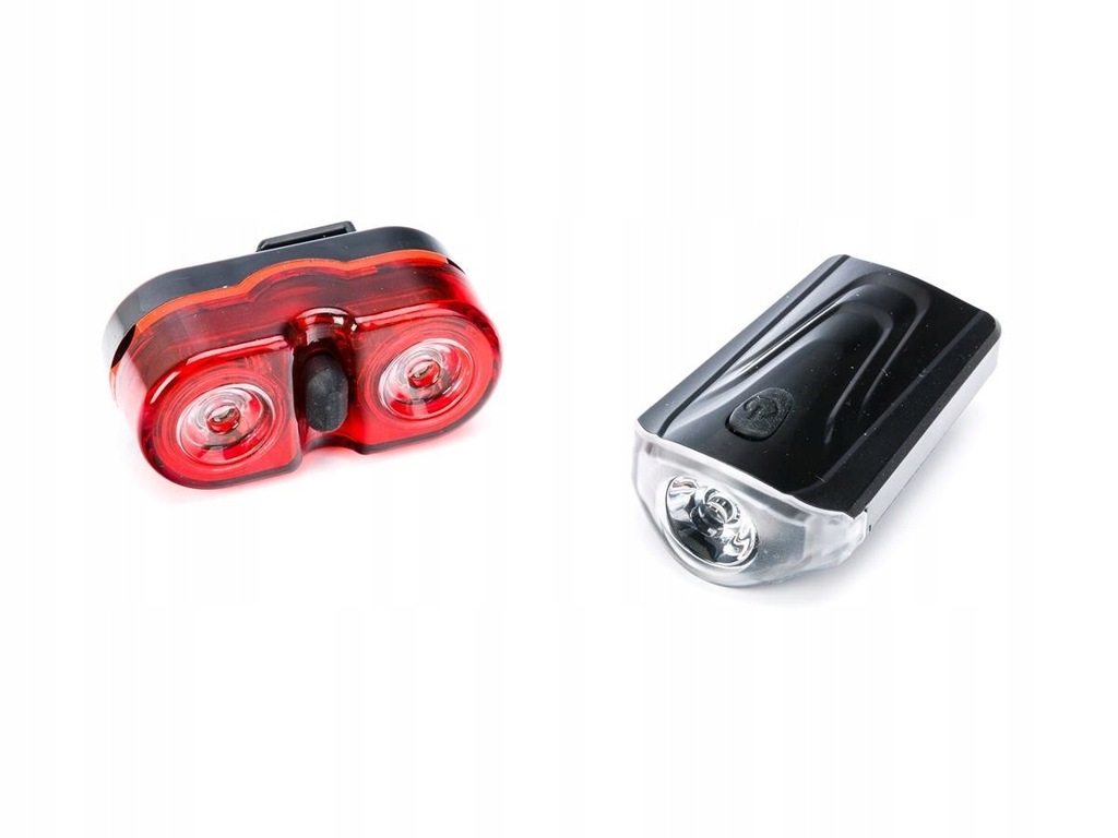 Zestaw lampa przód + tył ,1-LED/3-LED. Posiada uchwyt do mocowania na rurę podsiodłową i kierownicę. Lampka przednia może służyć jako latarka. Zasilanie bateryjne.