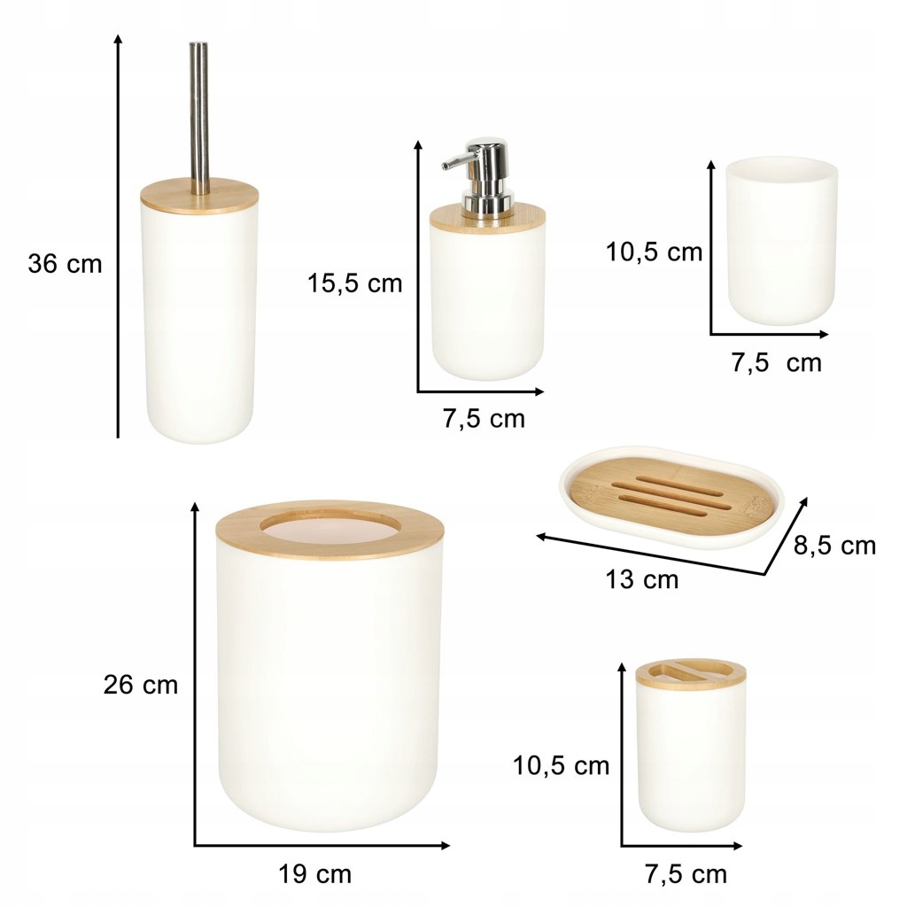 ZESTAWŁAZIENKOWY SZCZOTKA DOZOWNIK KOMPLET 6 ELEMENTÓW BIAŁY