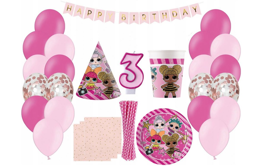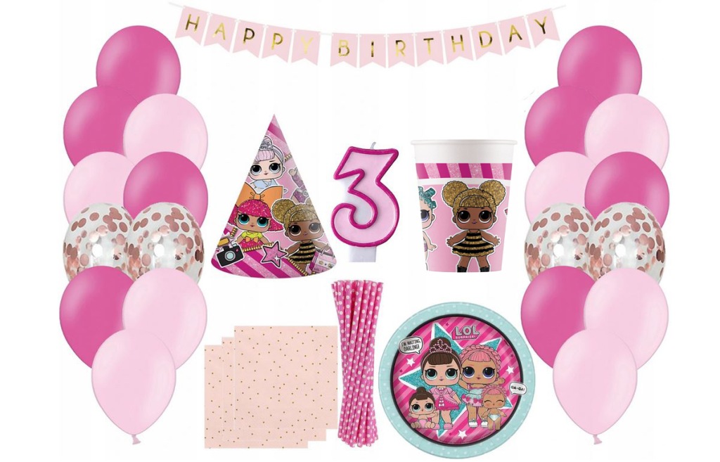 Zestaw urodzinowy LOL Surprise dekoracja z balonów na trzecie urodziny.