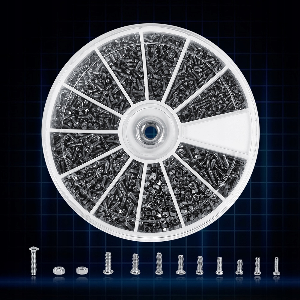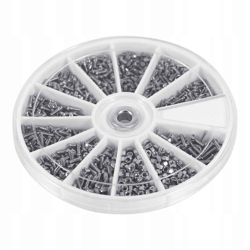 - Zestaw ten zawiera 12 rodzajów małych śrubek i nakrętek do zegarków, okularów, elektroniki lub innych napraw wymagających małych śrubek. W sumie jest 600 sztuk, dobrze zapakowanych i posortowanych w plastikowym pudełku, co jest bardzo wygodne do wyjmowania potrzebnych śrub.