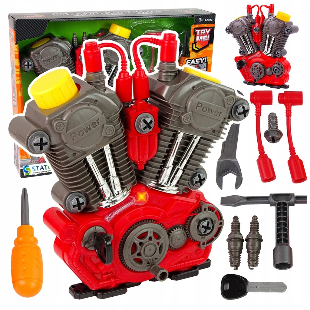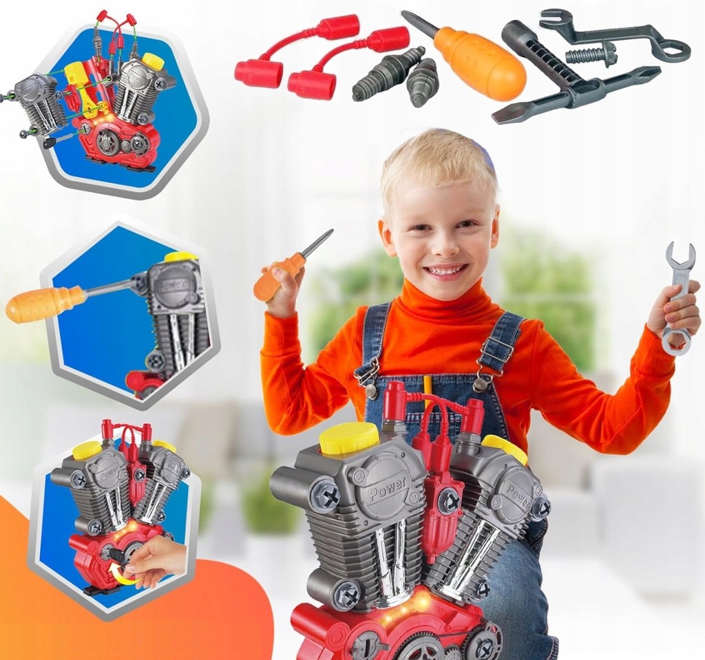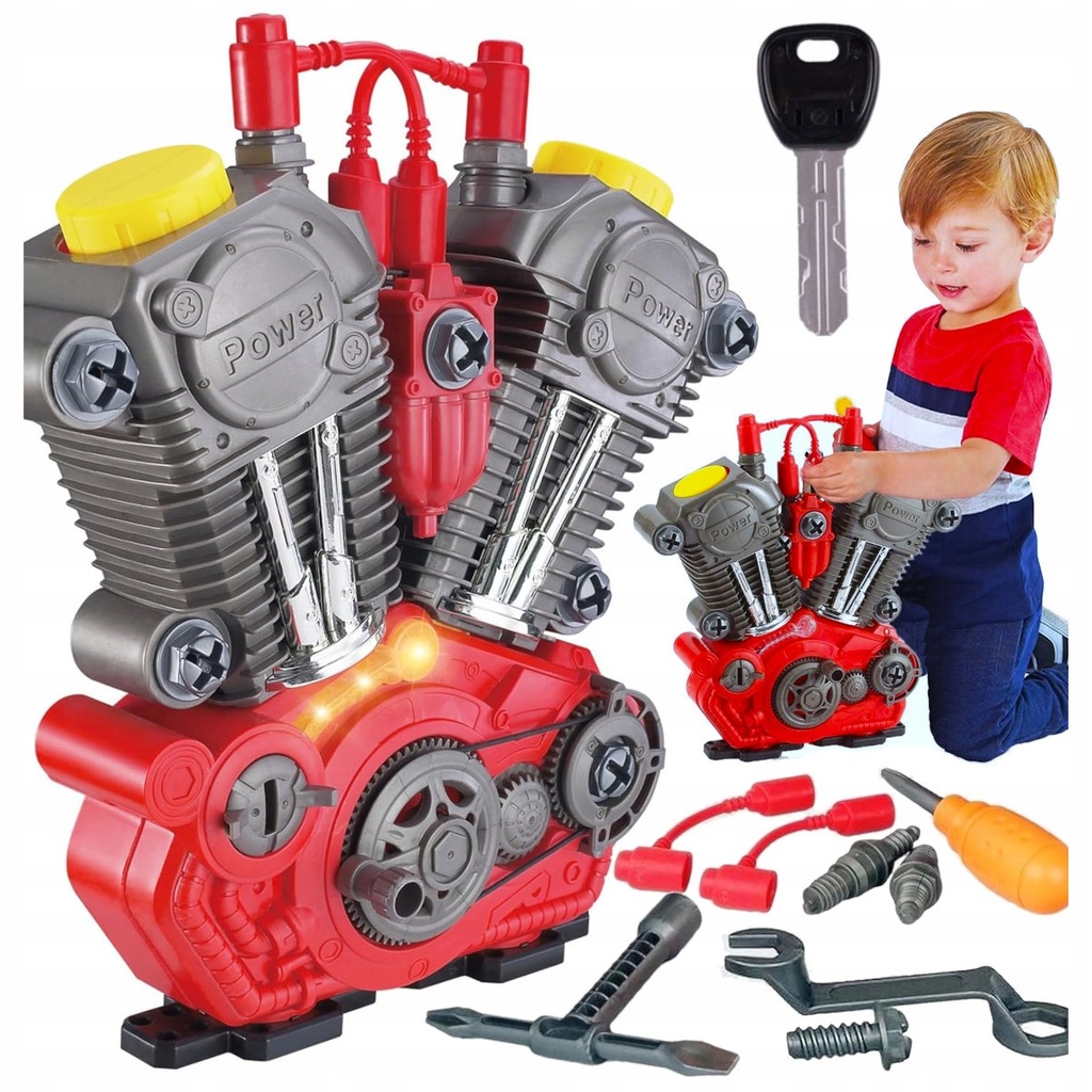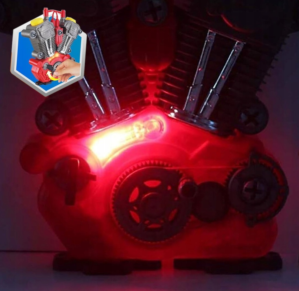 Daj dziecku szansę poczuć się jak prawdziwy mechanik! Oferujemy nasz najnowszy silnik motocyklowy do skręcania i rozkręcania z realistycznymi efektami dźwiękowymi i świetlnymi.