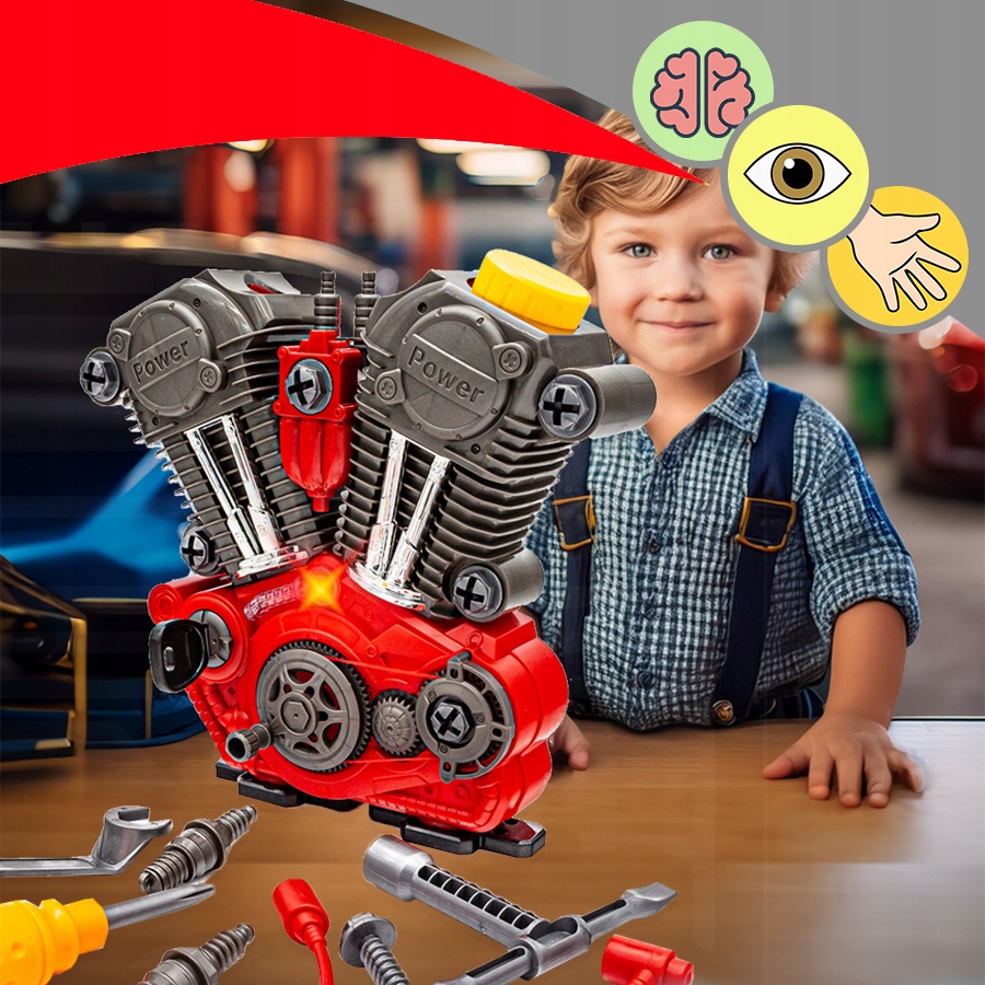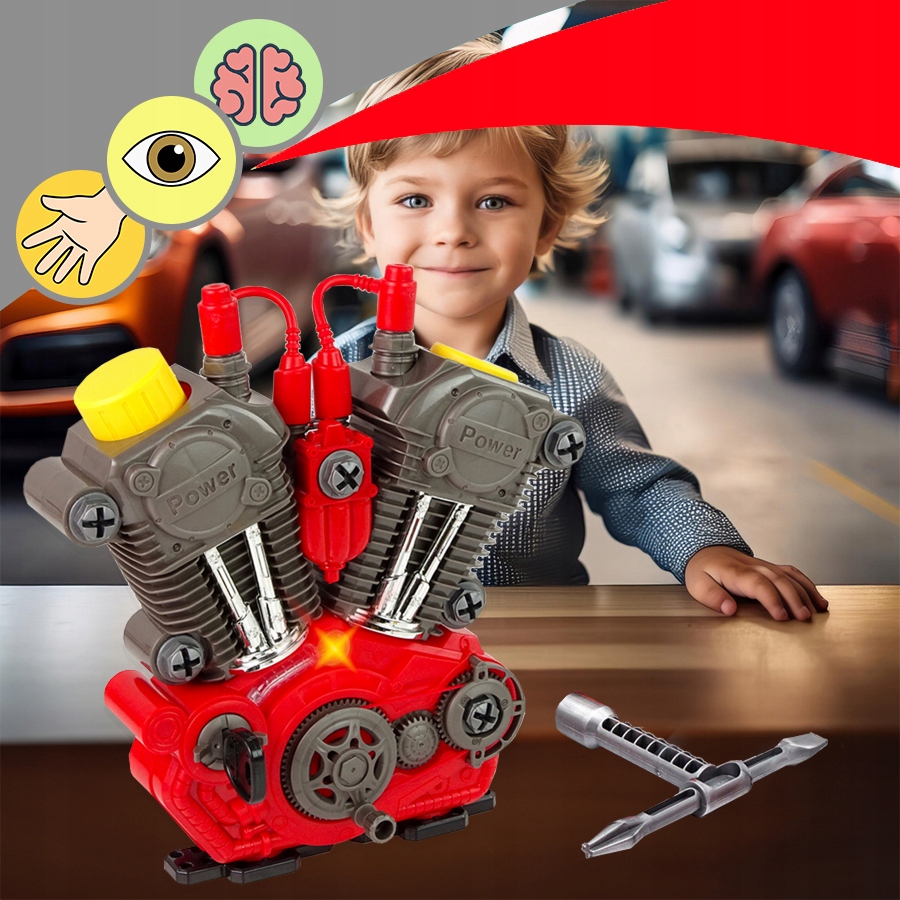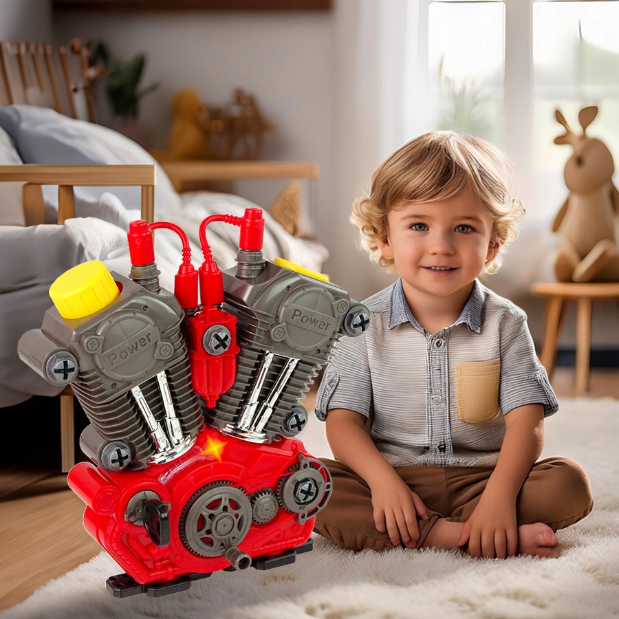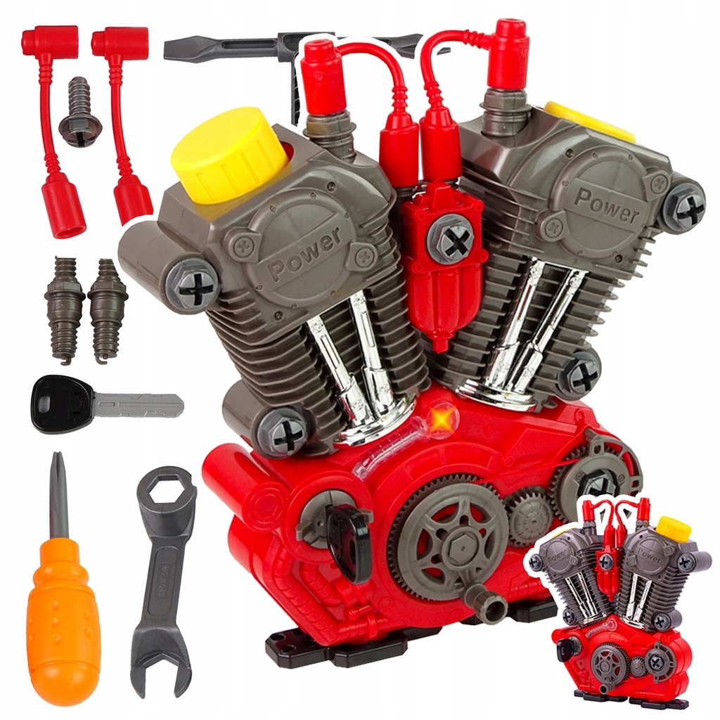 Daj dziecku szansę poczuć się jak prawdziwy mechanik! Oferujemy nasz najnowszy silnik motocyklowy do skręcania i rozkręcania z realistycznymi efektami dźwiękowymi i świetlnymi.
