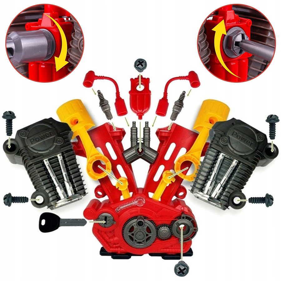 Zestaw pozwala dzieciom na pozwala na zrozumienie, jak działają prawdziwe silniki. Wielokrotne rozkręcanie i skręcanie różnych elementów silnika motocyklowego sprawia, że dziecko uczy się podstaw mechaniki przez zabawę. Do takich części zaliczamy: