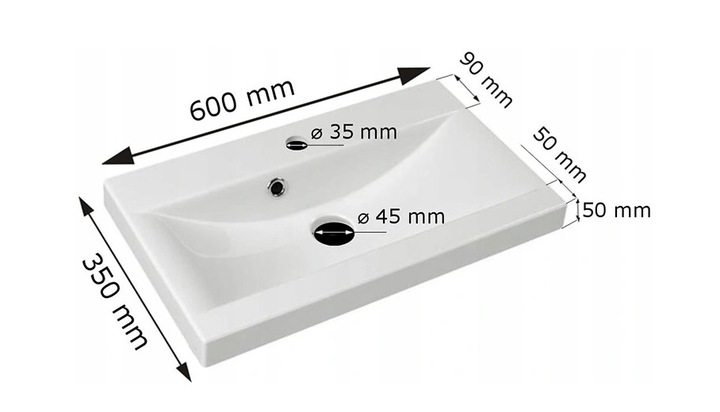 ✔️ Umywalka ceramiczna (60 x 35 cm) – ergonomiczna, elegancka, łatwa do utrzymania w czystości
