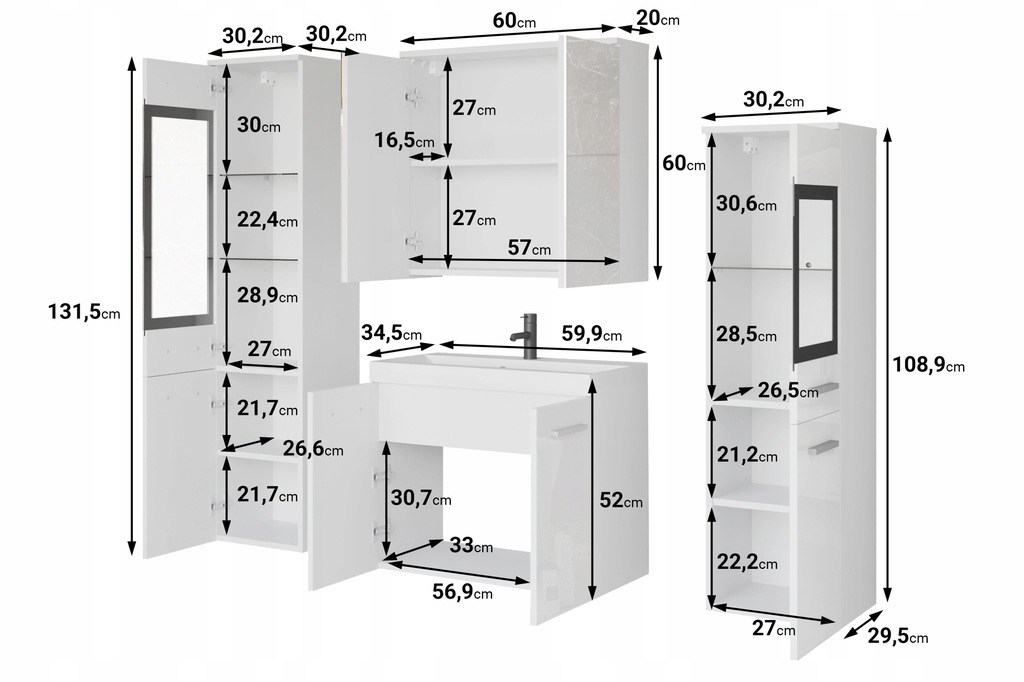 Zestaw Mebli Łazienkowych Madrit II – Biały Połysk, Maksymalna Funkcjonalność
