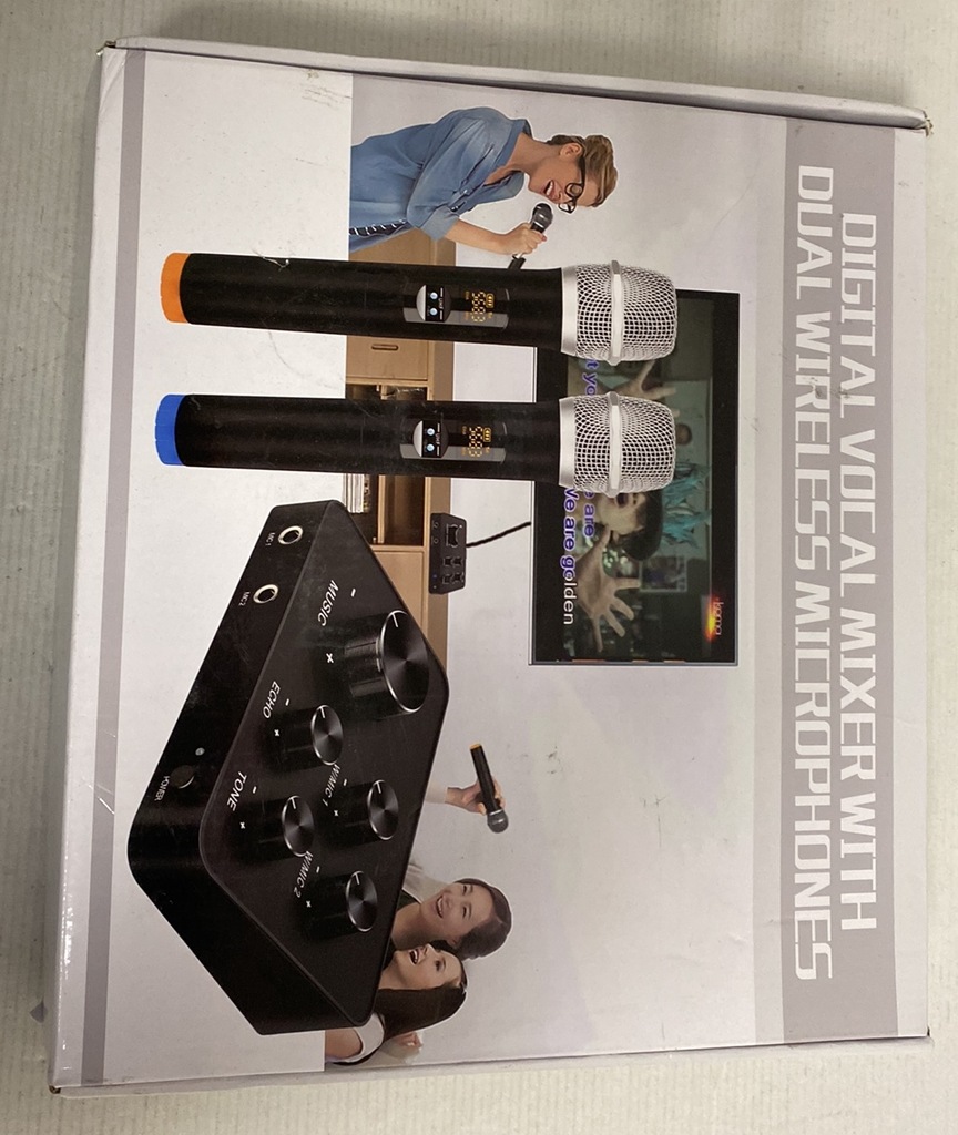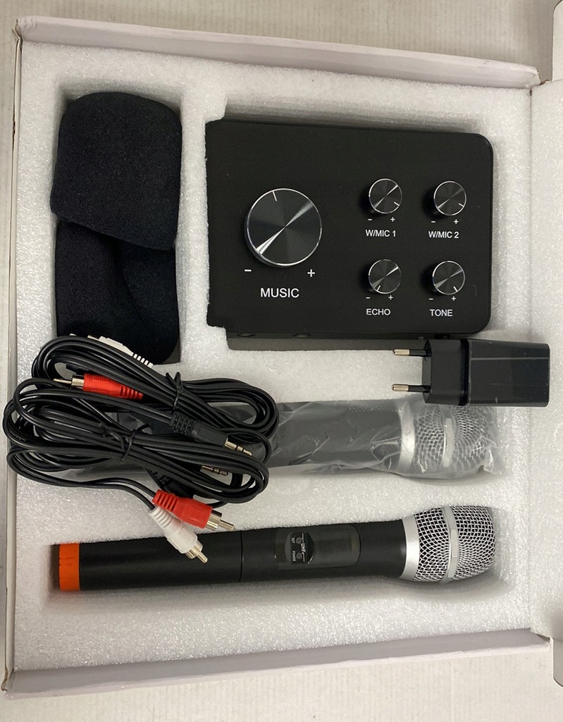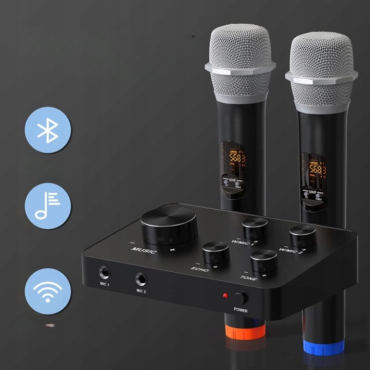 Zestaw przenośnego miksera mikrofonowego do karaoke, z podwójnym mikrofonem bezprzewodowym UHF, HDMI i wejściem/wyjściem AUX do karaoke, kina domowego, wzmacniacza, głośnika.
