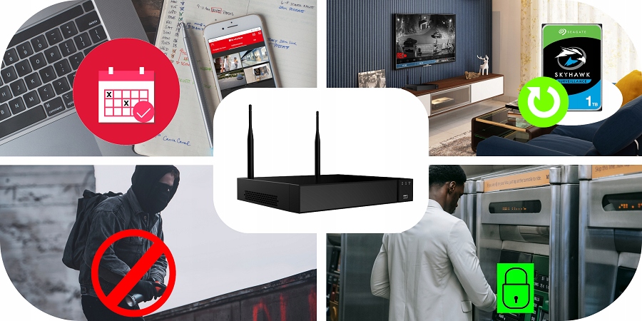 Rejestrator z zestawu umożliwia obsługę maksymalnie 8 kamer. Rejestrator dzięki zastosowaniu dwóch wydajnych anten umożliwia bezprzewodową komunikację z kamerami. Teraz każdą instalację poprowadzisz szybko i sprawnie - bez konieczności prowadzenia przewodów lub bruzdowania ścian.