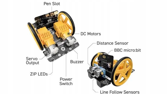 Kitronik: MOVE Motor dla BBC micro:bit zapewnia zabawne wprowadzenie do robotyki Buggy. Dowiedz się więcej o ruchu, jak wykorzystać światło i dźwięk, wykrywanie i unikanie przeszkód oraz jak kodować: MOVE Motor to Follow a line. W połączeniu z funkcjami radiowymi micro:bit możliwości są nieograniczone.