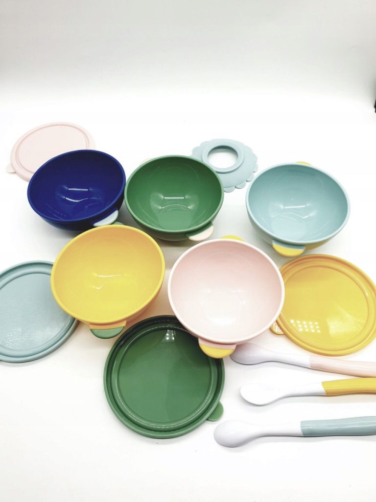 Naczynia posiadają antypoślizgowe elementy, które stabilizują je na stole, eliminując ryzyko przewrócenia podczas nieporadnych ruchów maluszka. Ponadto, kolorowy i przyjazny design naczyń z pewnością zwróci uwagę dziecka, sprawiając, że jedzenie stanie się przyjemnością.