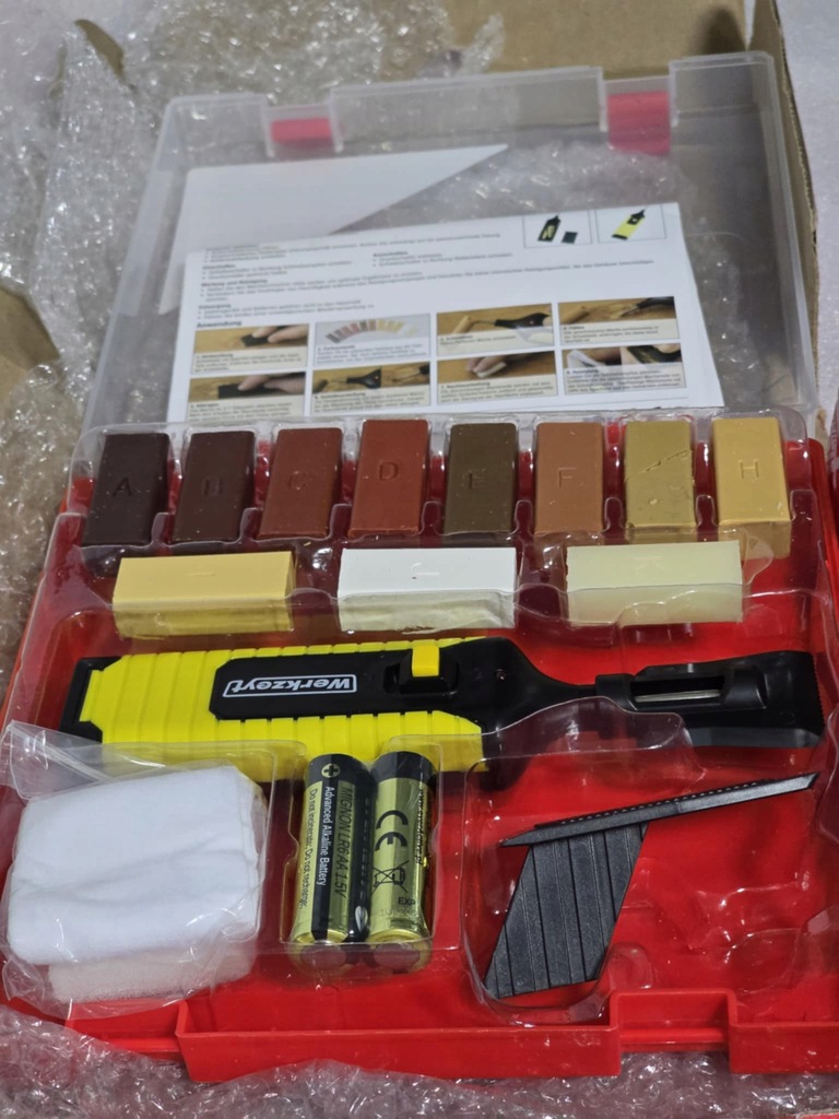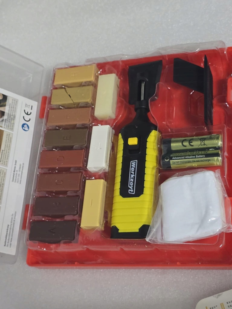 Kompaktowy zestawdo naprawy okien, drzwi i drewnianych podłóg dzięki któremu szybko i trwale usuniesz płytkie oraz głębsze zadrapania, dziury, naprawisz uszkodzone narożniki i krawędzie, wgniecenia – zarówno na powierzchniach dekorów jak i drewnianych. Doskonale sprawdza się przy naprawach miejscowych. W skład zestawu wchodzą wszystkie narzędzia, niezbędne do wykonania napraw.