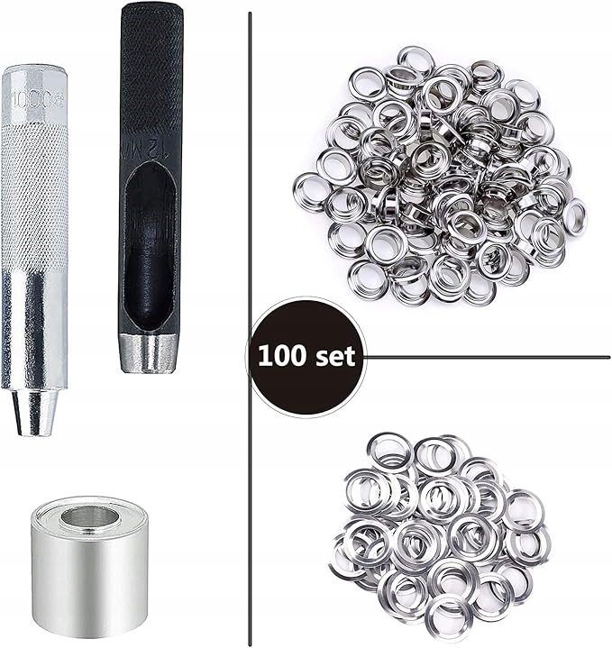 - ŁATWY W UŻYCIU: Zestaw z oczkami do przelotek ułatwia instalację. Najpierw użyj dziurkacza, aby wyciąć otwór w plandece (tkaninie), następnie podnieś zestaw oczek i na koniec przymocuj zestaw oczek za pomocą dołączonego narzędzia.