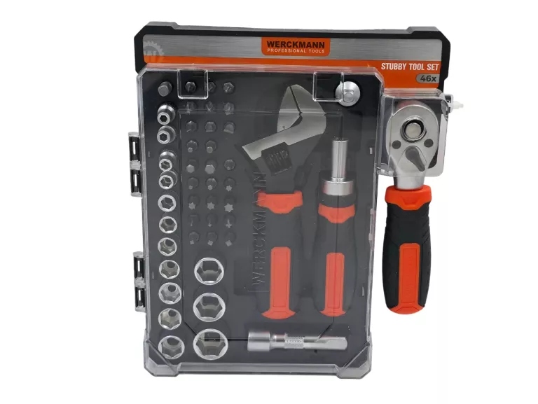 Praktyczny i poręczny, kompaktowy zestaw narzędzi marki Werckmann Professional Tools. Zawiera aż 46 elementów, w tym nasadki, bity, klucze i grzechotkę. Idealny do drobnych napraw domowych, majsterkowania i do zabrania w podróż. Wszystko uporządkowane w solidnym etui.