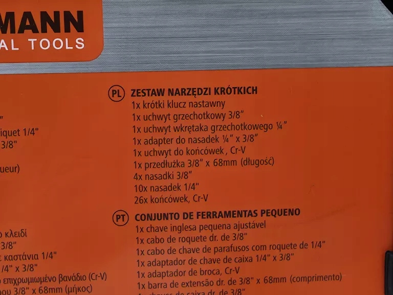 - Zestaw zawiera m.in.: Nasadki, bity, klucze, grzechotkę, wkrętak z wymiennymi końcówkami