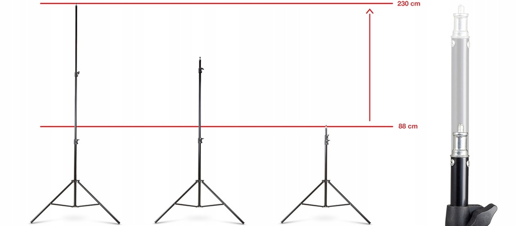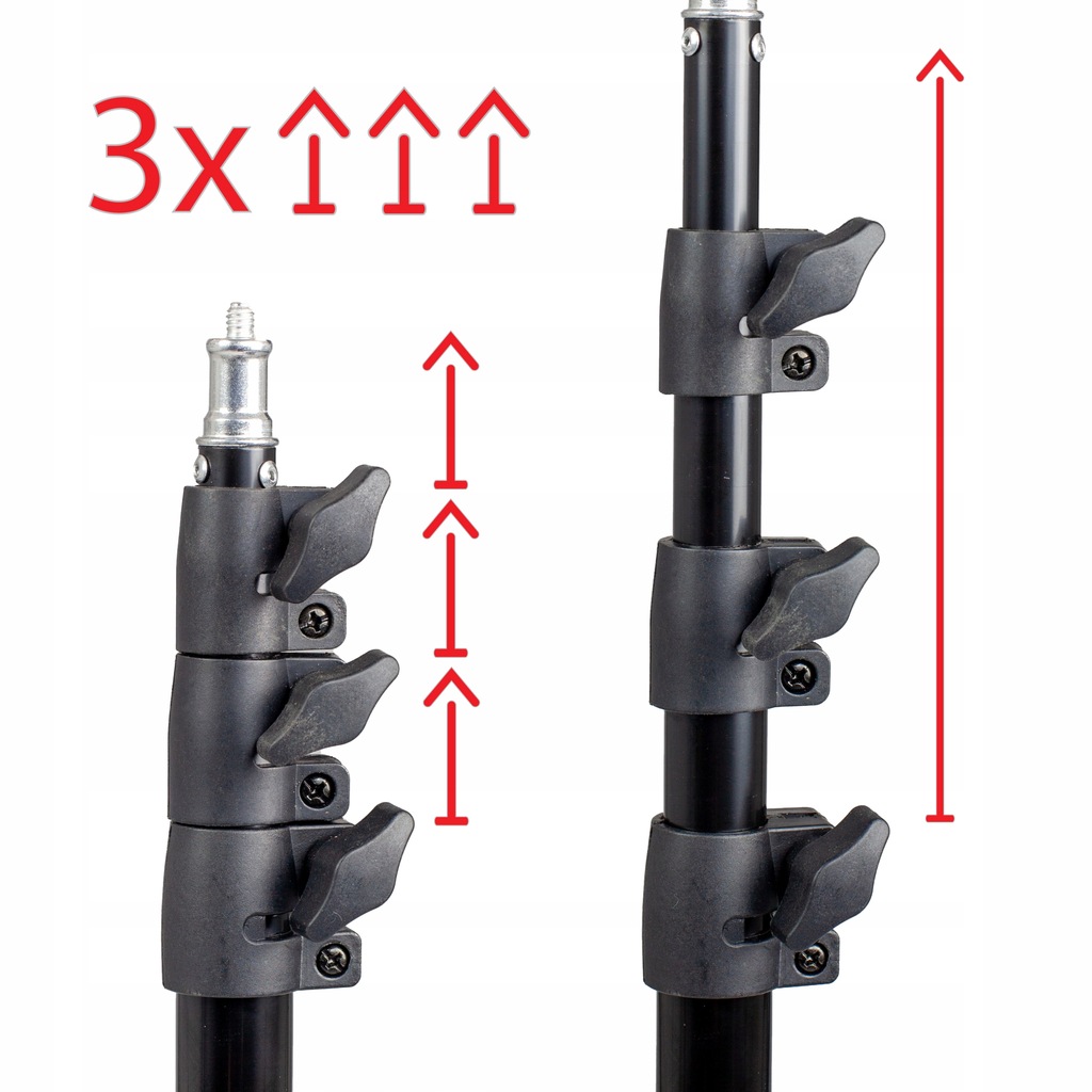 Zaawansowany mechanizm regulacji wysokości pozwala dostosować statyw do różnych scenariuszy, umożliwiając pracę na różnych poziomach. Statyw jest łatwy w obsłudze, dzięki szybkiemu i płynnemu regulowaniu wysokości, co przyspiesza proces przygotowań przed sesją.