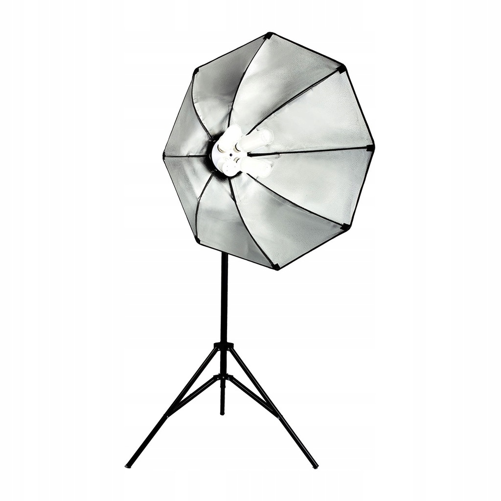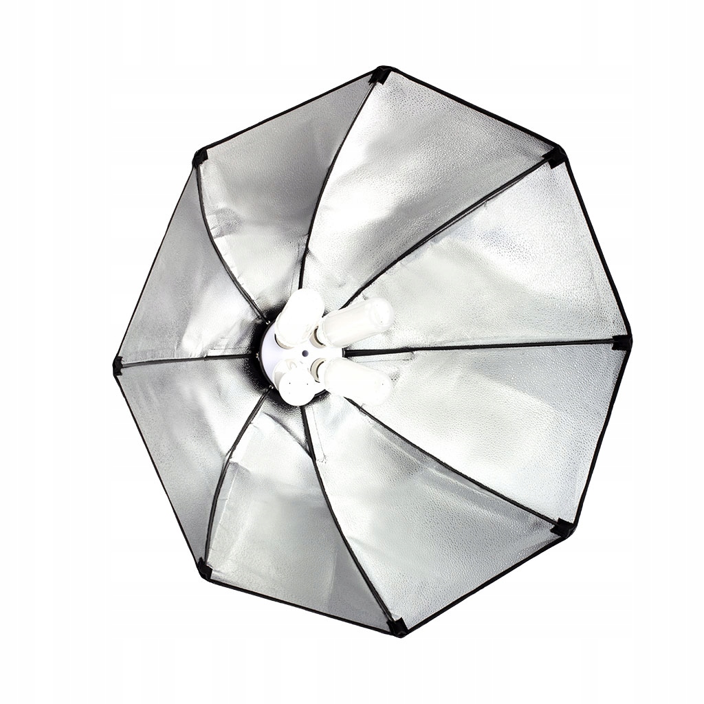 Oprawa oświetleniowa składa się z solidnej oprawy na 4 żarówki E27 oraz precyzyjnie zaprojektowanej czaszy softboxa. Czasza została starannie ukształtowana, aby zapewnić maksymalne skierowanie światła na tkaninę dyfuzyjną.