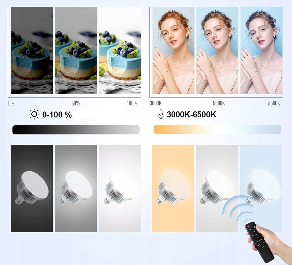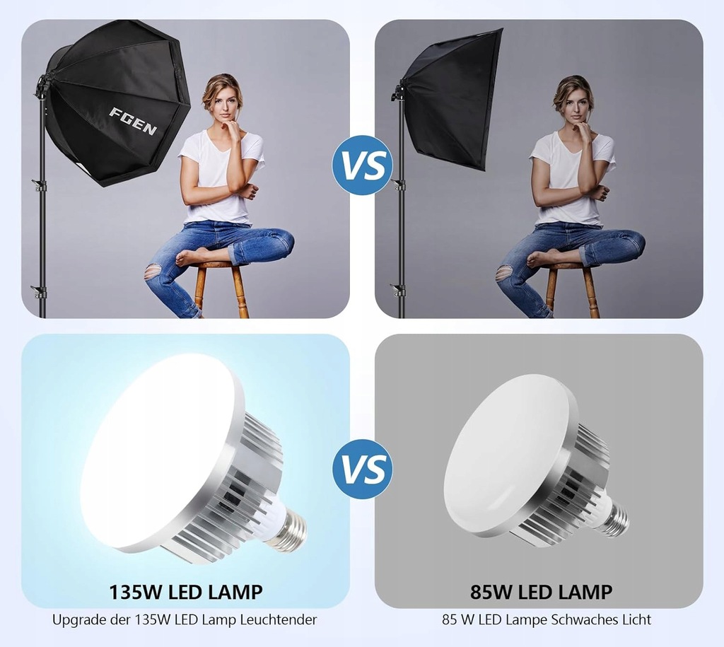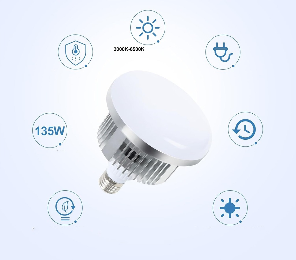 Zaktualizowane żarówki LED 135 W: Żarówka softbox posiada 140 wysokiej jakości diod LED, które są bardziej odpowiednie do profesjonalnej fotografii, zapewniając jaśniejsze i wyraźniejsze oświetlenie oraz oszczędność energii do 80%. Żywotność wynosi około 10 000 godzin. Temperaturę barwową w zakresie 3000K – 6500K i jasność od 1% do 100% można łatwo regulować. Niska temperatura pracy zapewnia, że żarówka się nie nagrzewa i tworzy idealne warunki do fotografii.