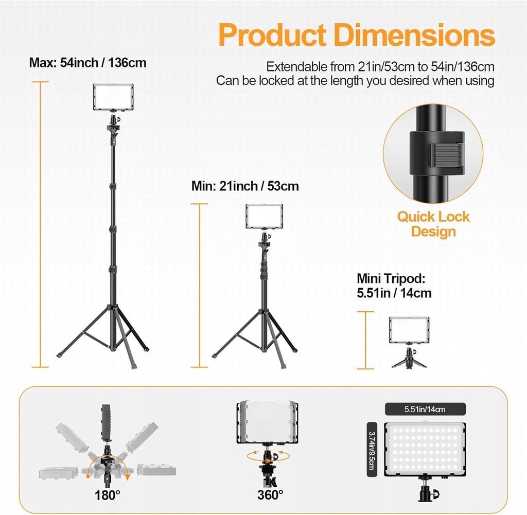 ✅BOGATE WZORY UŻYTKOWANIA: Światło ciągłe stołu fotograficznego można regulować w zakresie 180 stopni, aby zapewnić zróżnicowane doznania świetlne. Lampa wideo jest wyposażona w 66 energooszczędnych diod LED, które zapewniają obfite światło i redukują zbędne cienie. Jasność można regulować w dowolnym momencie, a 11 poziomów jasności zaspokoi wszelkie potrzeby.