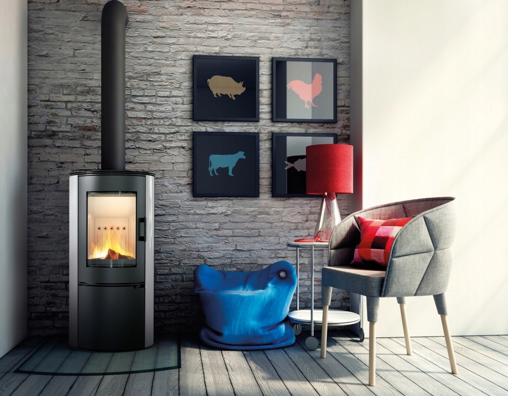 Koza AB o cylindrycznym, nowoczesnym kształcie to świetne rozwiązanie dla osób, które pragną prawdziwego ciepła domowego ogniska, ale nie dysponują dużą przestrzenią. Wykończona w nawiązaniu do stylu retro - wielkoformatowe kafle z połyskiem.