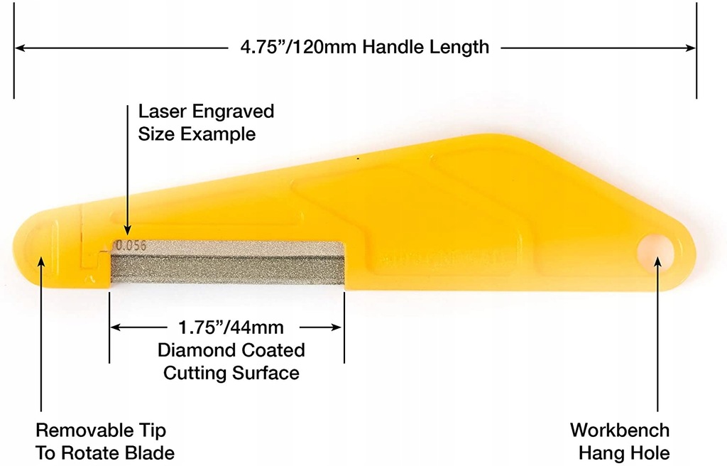 - Przemysłowo wytrzymała powierzchnia tnąca doskonale sprawdza się na wszystkich najpopularniejszych materiałach nakrętek, takich jak nylon, kość, grafit i