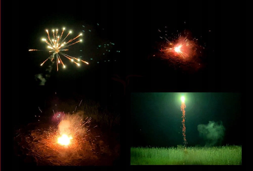 - Efekt: 6 rakiet, 4 op. różnych petard, 2 op. pchełek, 1 rzymski ogień, 1 bateria petard błyskowych, 1 op. trzaskających kulek, 1 op bączków, 2 strzelające serpentyny.