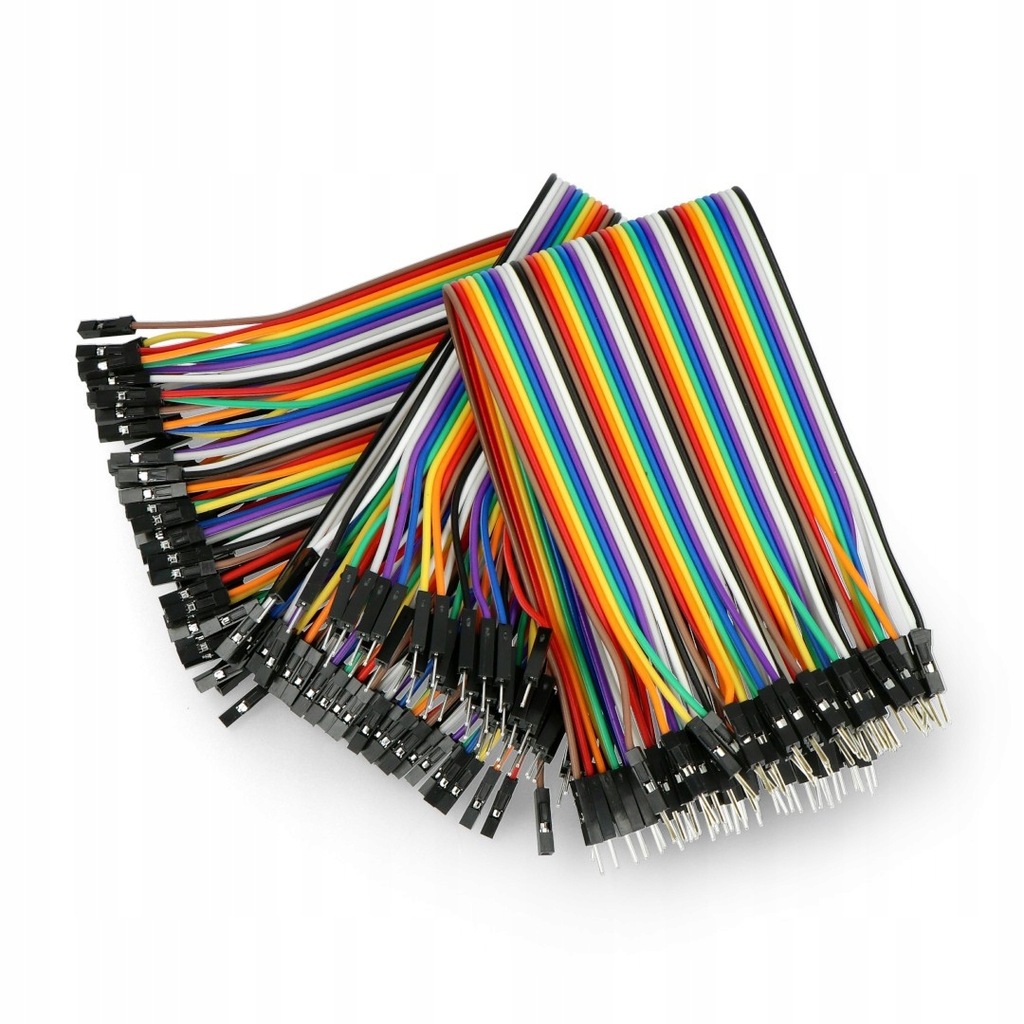 - 2 Zestaw przewodów połączeniowych 20 cm - 3 x 40 szt. - składa się z przewodów zakończonych wtykami żeńsko - żeńskimi, żeńsko - męskimi, męsko - męskimi.