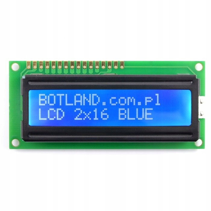 - 12 Wyświetlacz LCD 2x 16 znaków - niebieski - popularny wyświetlacz pozwalający np. odczytywać pomiary z czujników.