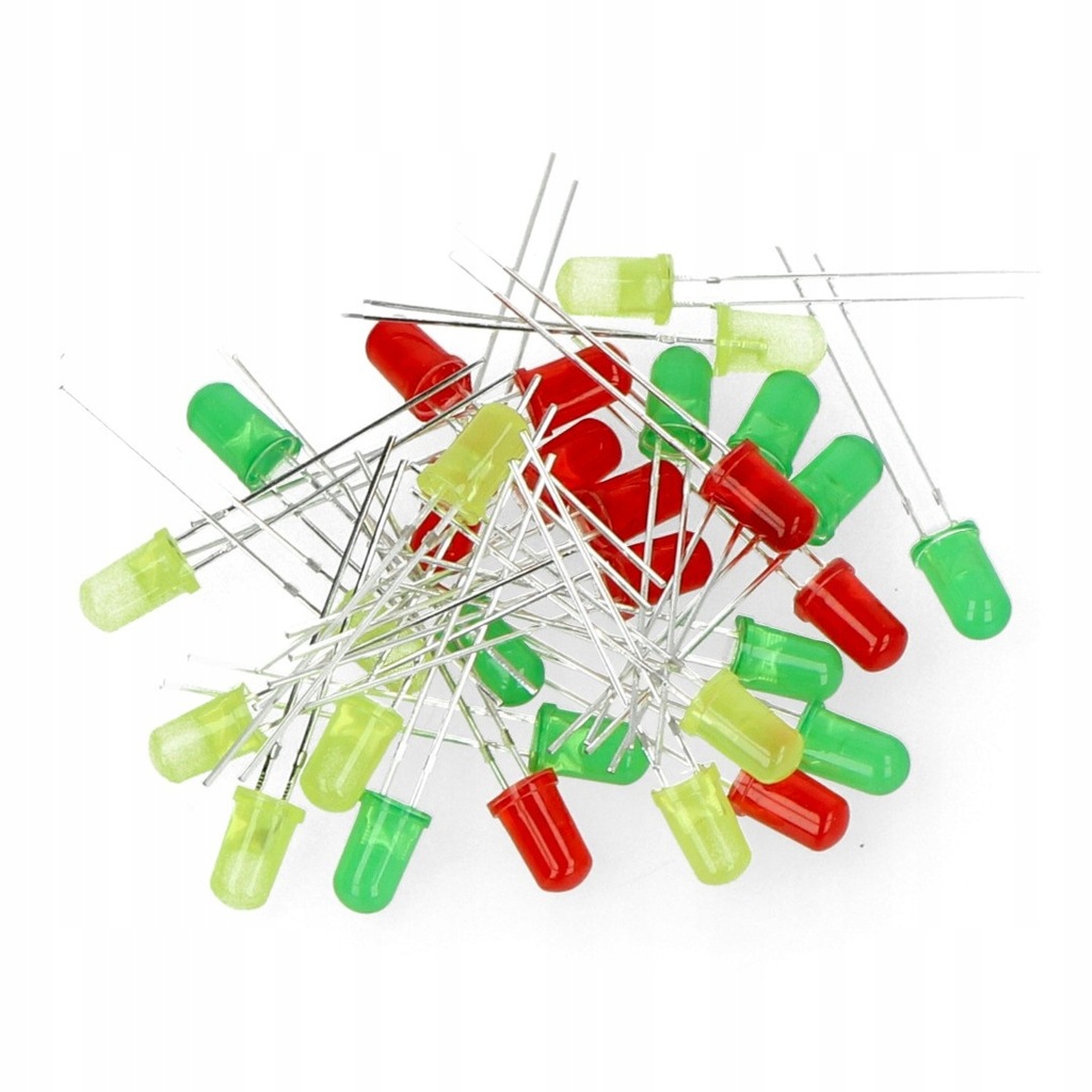 - 3 Zestaw diod LED 5 mm - 30 szt. - po 10 sztuk czerwonych, zielonych i żółtych.