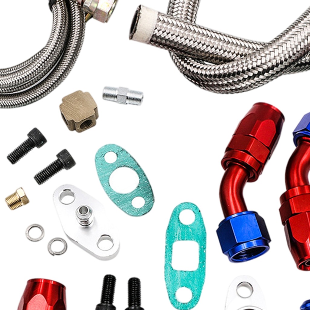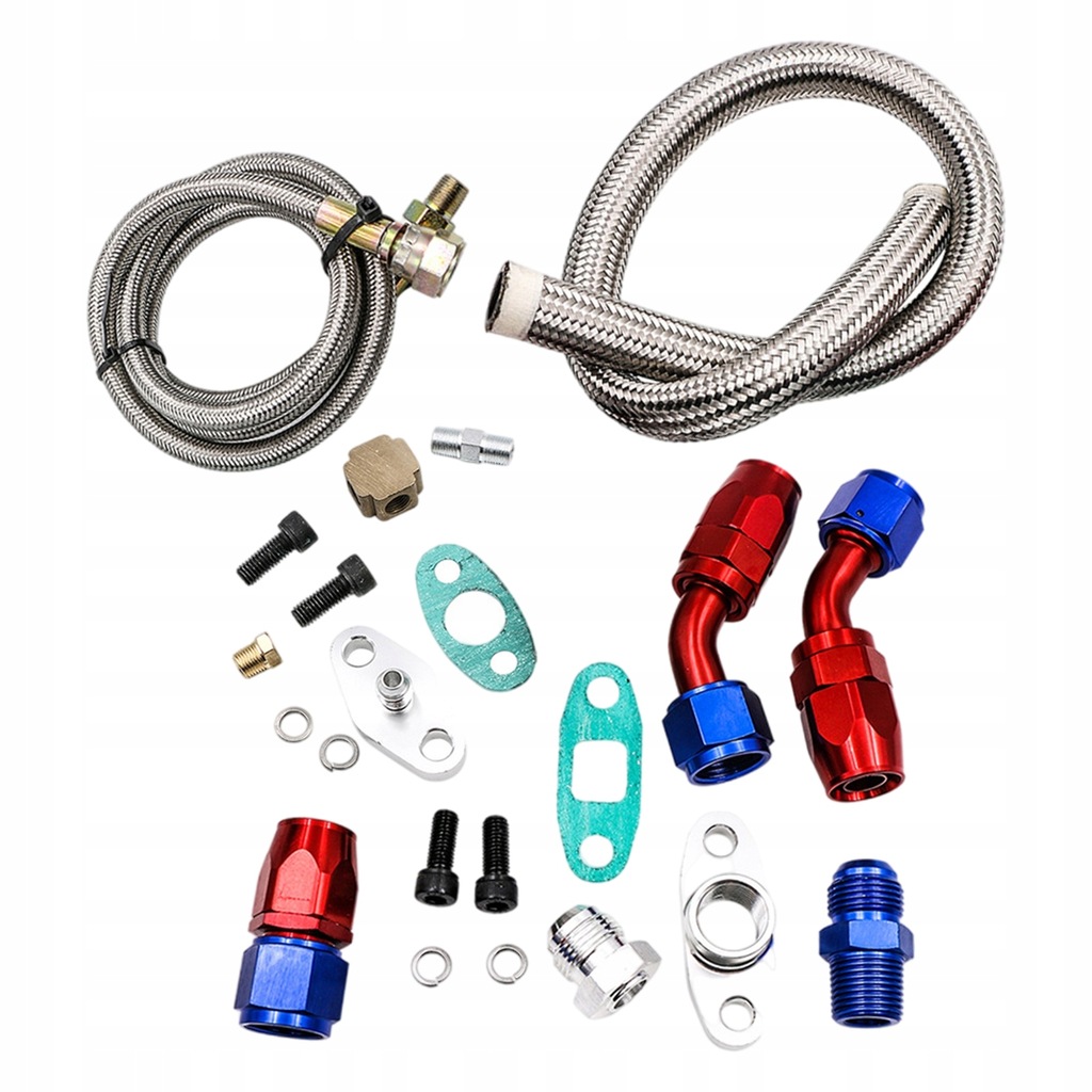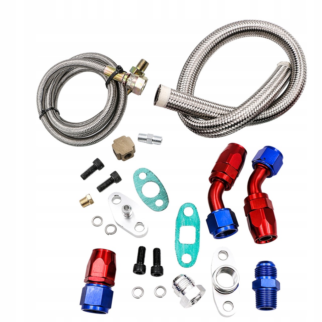 Turbo Oil Drain Return Line Oil feed Kit Universal Fit for T61 T3 Replace ODL03 Silver