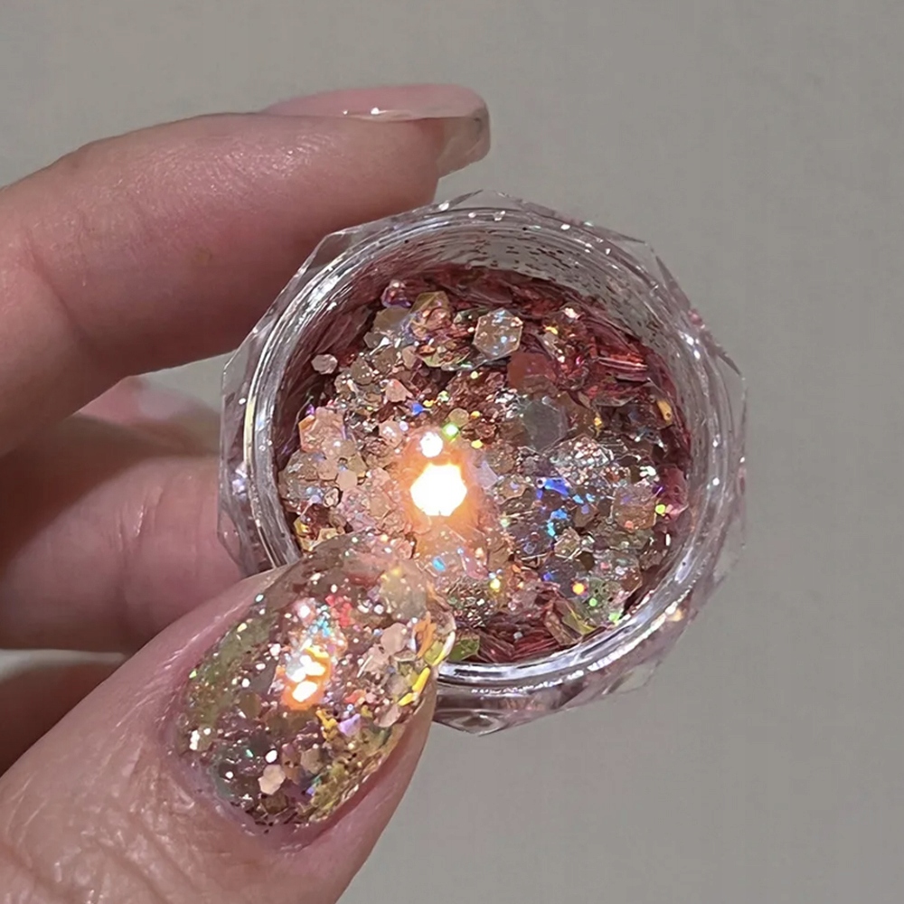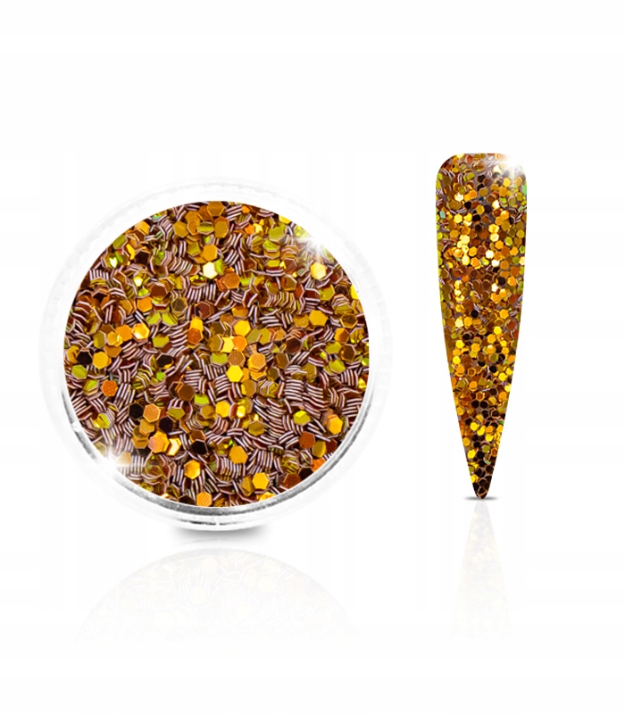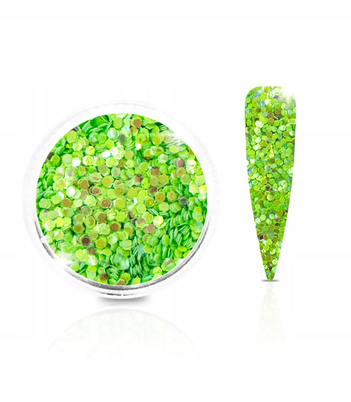 Niektóre pyłki brokatowe mają efekt holograficzny, co oznacza, że zmieniają kolor w zależności od kąta patrzenia na paznokieć.