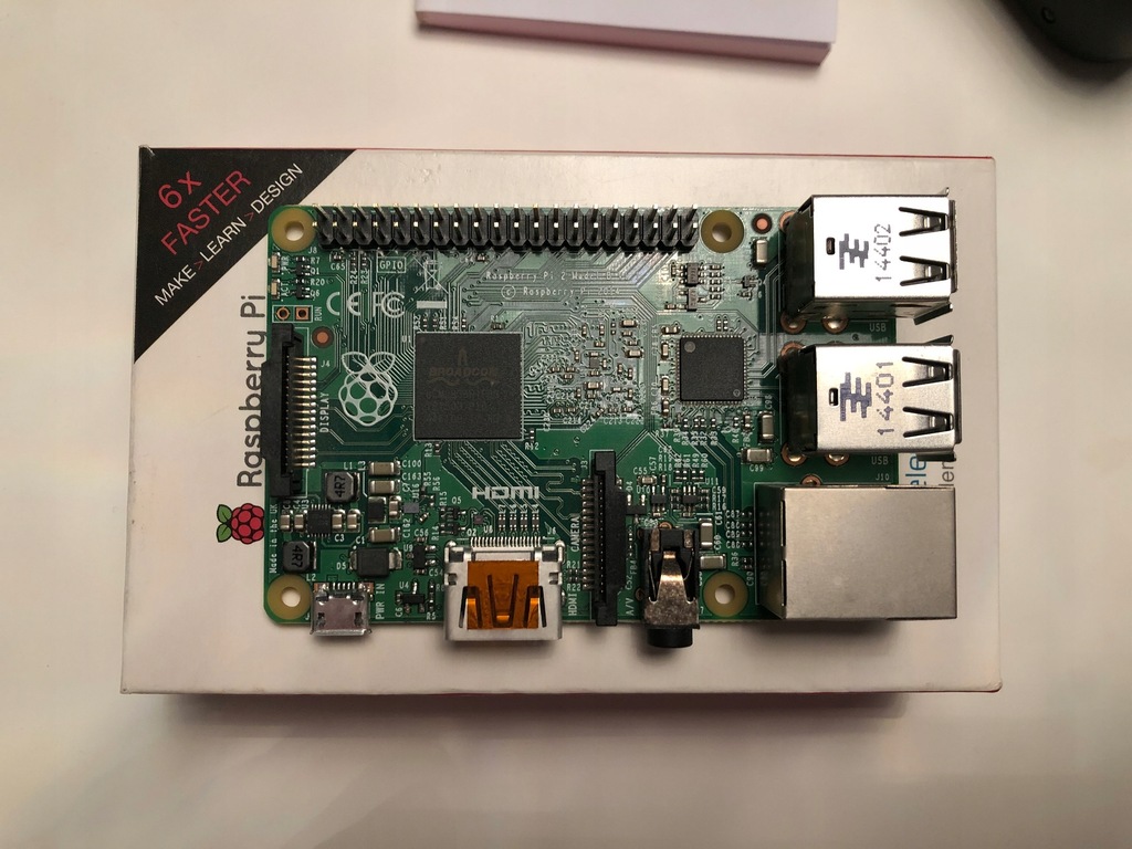 Popularny minikomputer Raspberry Pi w wersji 2B. Ten model wyróżnia bardziej wydajny procesor quad-core Broadcom BCM2836 900 MHz i większa ilość pamięci 1 GB RAM. Płytkę wyposażono w znane z wersji B+ peryferia, są to m.in. cztery gniazda USB, dodatkowe 40 GPIO, złącza na kartę microSD, port Ethernet oraz cztery otwory montażowe.