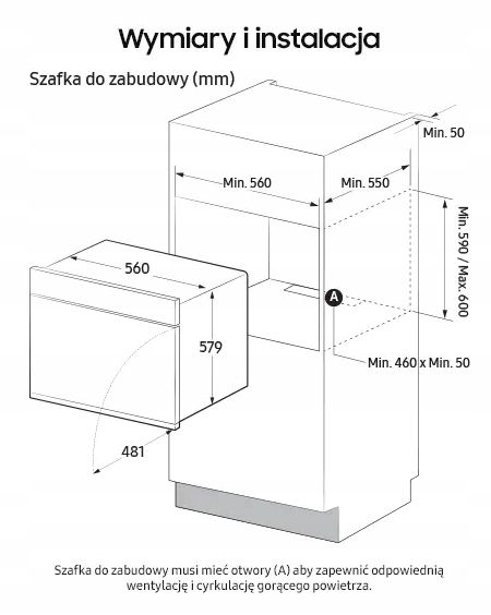 - Rodzaj montażu: Do zabudowy