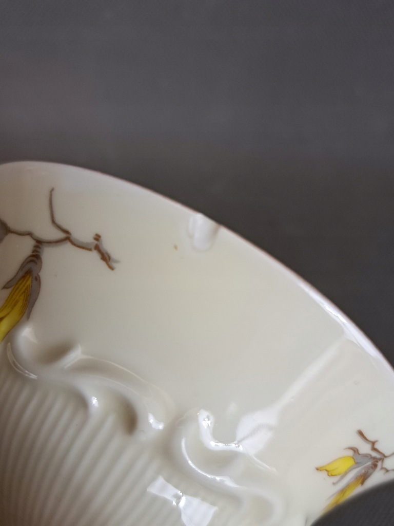 Występują przetarcia zdobień i złoceń, ubytek na krawędzi filiżanki ( widoczne na zdjęciu ).