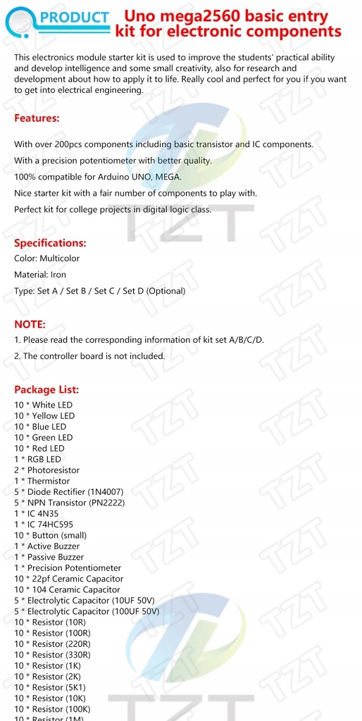 Dzień dobry. Aukcja dotyczy zestawu komponentów, które są niezbędne do tworzenia układów z mikrokontrolerami. Idealne do nauki robotyki z arduino. Czujniki i elementy są przystępne nawet dla laika i początkującego elektronika. Świetnie nada się na bazę komponentów, gdyż znajduje się tam niemal każdy istotny element do budowy swoich pierwszych maszyn elektronicznych