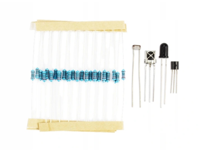 - 38. Zestaw rezystorów: 220 Ohm – 10 szt., 1k – szt., 10k – 10szt.
