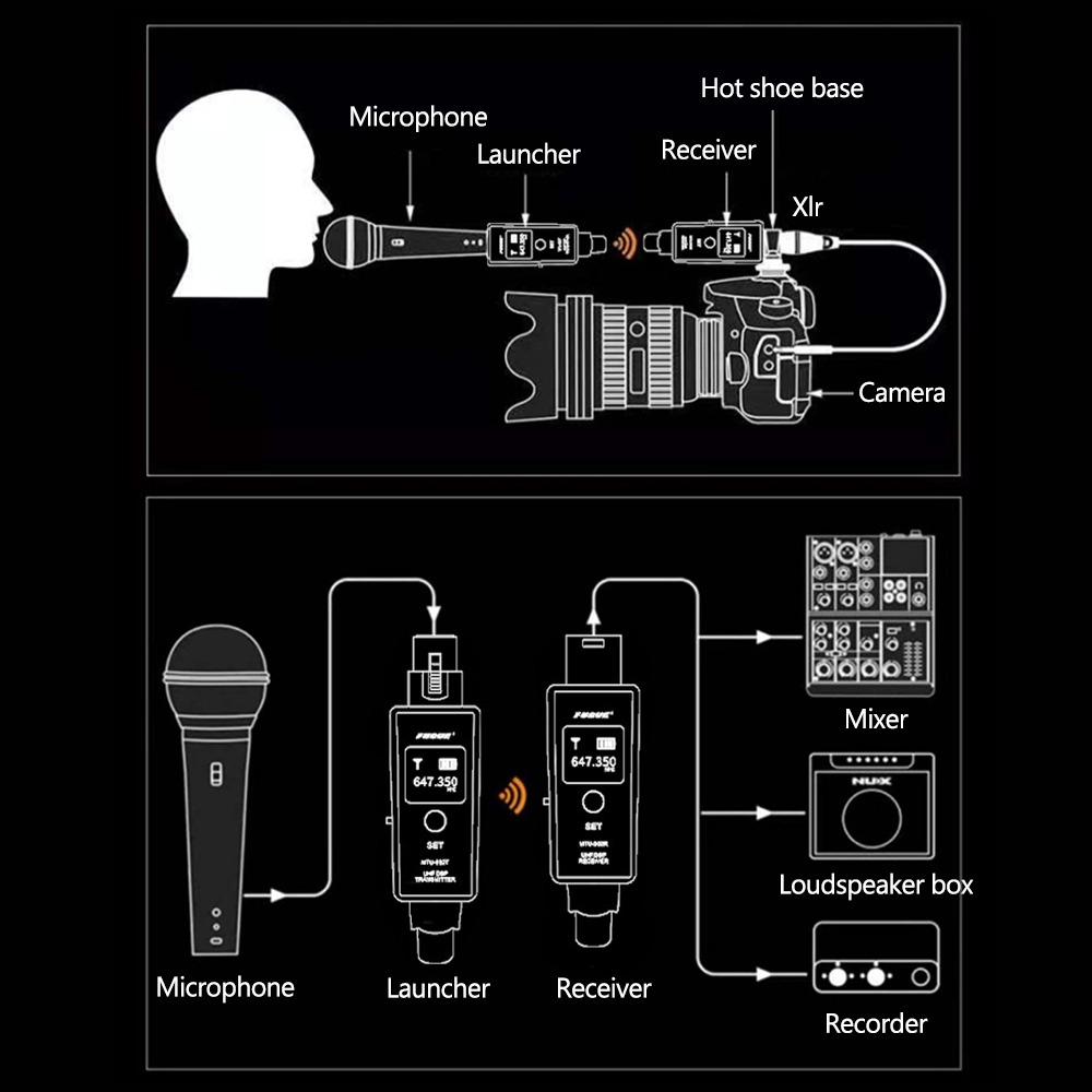 zasilaczy w adapterze mikrofonu żeńskiego XLR na męski 6,35 mm, z mikserem audio, rejestratorem, odbiornikiem, systemem PA, wzmacniaczem itp. Zapewniam stabilną i niezawodną dostępność bezprzewodową.