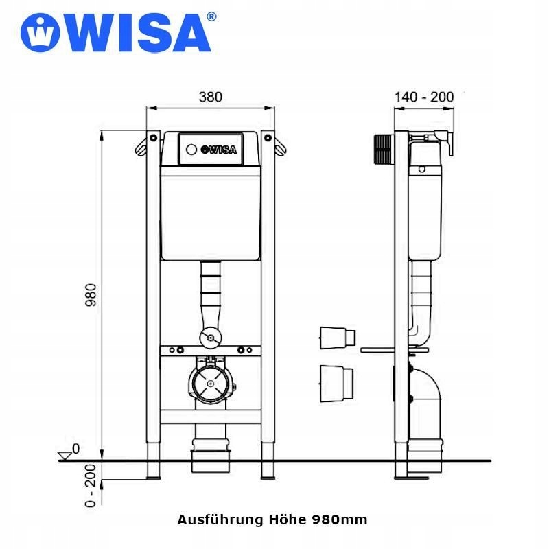spłuczka podtynkowa, uchwyt ścienny, regulowany Stopy 0-20 cm. Podwójne spłukiwanie 3/6 l lub spłukiwanie podtrzymujące 6 l, regulacja ilości spłukiwania. (6-7,5 litra). Izolowany przed kondensacją, zawór napełniający, również do WH-WC, gwint mocujący M12. (180 mm/230 mm), element Ü Ř 90/110 mm, kolano PE-HD Ř 90/90 mm. Bez poszycia/panelu sterowniczego.
