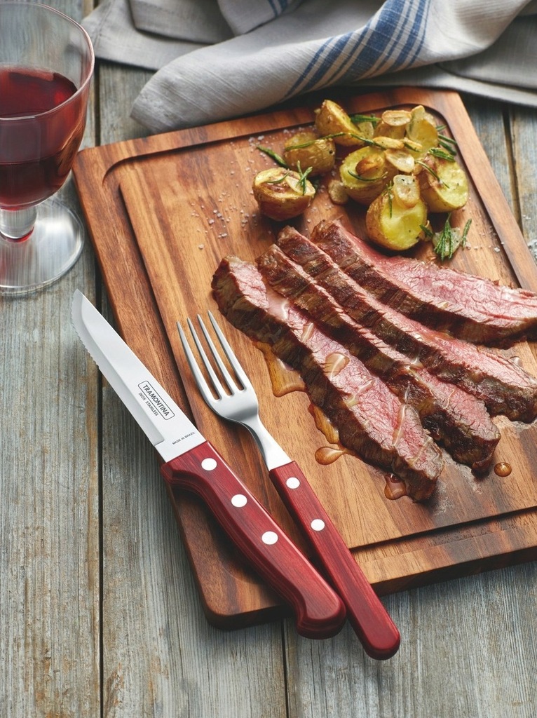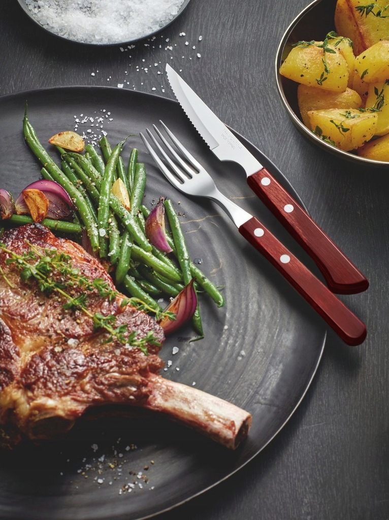 Zestaw widelców do steków z serii Churrasco Gaucho idealnie nadają się nie tylko do restauracji, ale również do codziennego użytku domowego. Drewniane uchwyty są wytrzymałe i nadają się do mycia w zmywarce. Ząbki widelców wykonane zostały ze stali nierdzewnej. Produkt spełnia wymagania norm § 31 ust. 1 LFGB względnie art. 3 rozporządzenia (EG) 1935/2004.