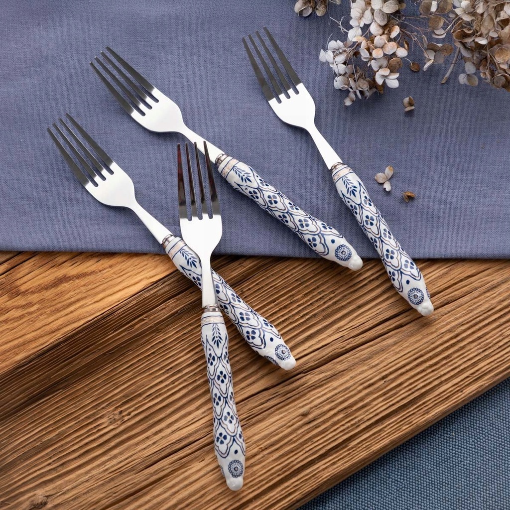 Zestaw widelców | MODERN HAMPTONS | srebrnych w niebieskie wzory | 4.00 | 727078