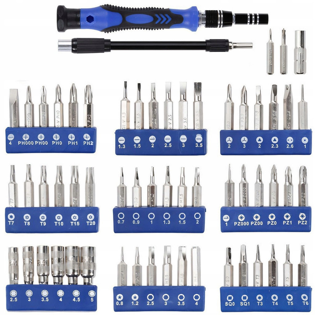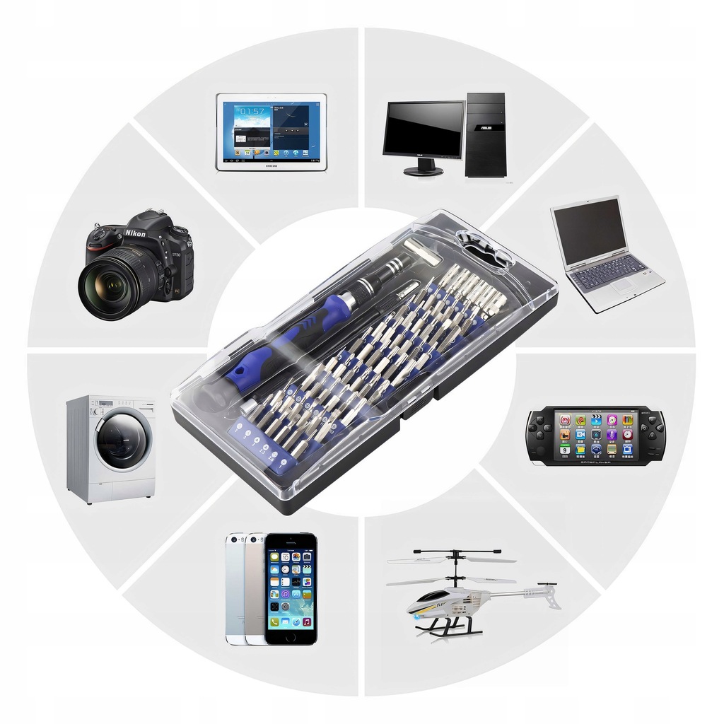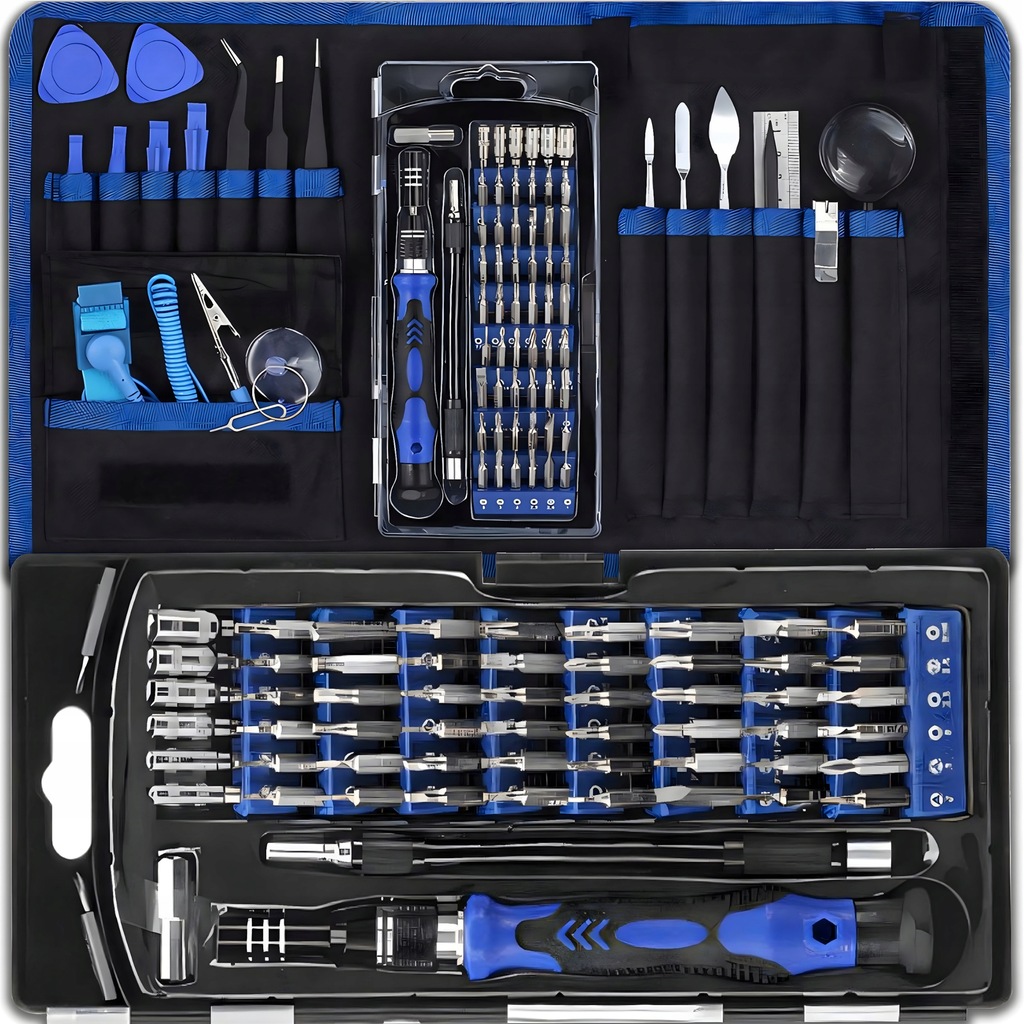 Nasz 75-częściowy zestaw wkrętaków przeznaczony jest do naprawy zegarka, laptopa okularów, smartfona, tabletu, aparatu, biżuterii. Jest to doskonałe narzędzie do precyzyjnych prac naprawczych, które wymagają delikatności i dokładności. Dzięki różnym rodzajom i rozmiarom naszych śrubokrętów, możesz łatwo dostosować narzędzie do konkretnego zadania.