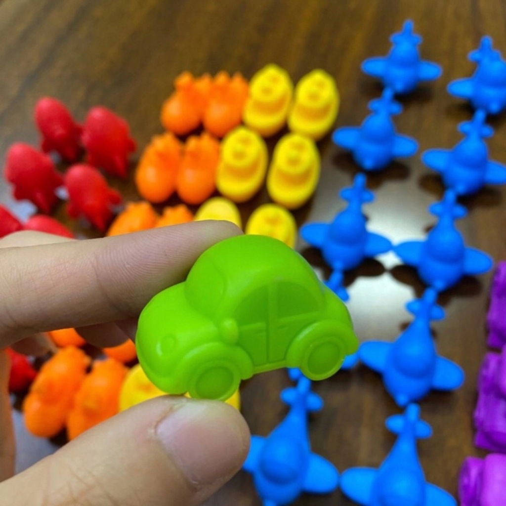 ZESTAW DO NAUKI LICZENIA I KOLORÓW GRA MONTESSORIPOJAZDY