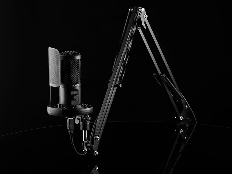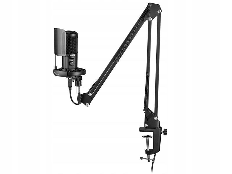 MAONO to mikrofon pojemnościowy o klasycznym designie. Zamocowany na regulowanym statywie montowanym do blatu na zacisk. Wysoka jakość dźwięku, solidna konstrukcja i redukcja szumów to główne zalety mikrofonu. Ten pojemnościowy mikrofon z dużą membraną o charakterystyce kardioidalnej świetnie sprawdzi się podczas tworzenia nagrań na YouTube, konferencji Skype, a nawet nagrań radiowych, muzycznych czy komunikacji w grach online. Działa bez dodatkowego zasilania i sterowników.