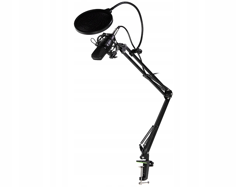 -Statyw -Bezpiecznie i stabilnie bez huśtania się. Konstrukcja stalowa z podwójnym ramieniem. Maksymalna obciążalność 2,5 kg, długość ramion 40 cm. Wyposażony w gwint 6,25 mm (5/8?), pasuje też do mikrofonów Blue Yeti, Blue Snowball.
