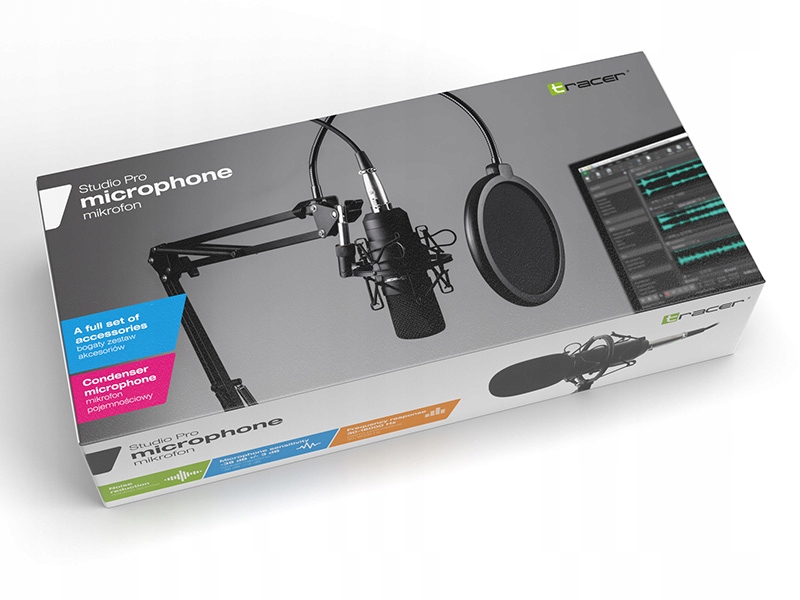 Wykorzystaj możliwości profesjonalnego zestawu z mikrofonem pojemnościowym TRACER Studio Pro o charakterystyce kardioidalnej.