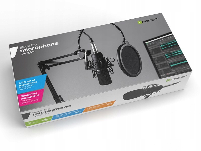 Wykorzystaj możliwości profesjonalnego zestawu z mikrofonem pojemnościowym TRACER Studio Pro o charakterystyce kardioidalnej.
