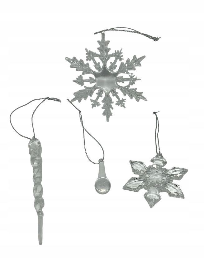 Ozdoby choinkowe Bożonarodzeniowe, sople lodu i płatki śniegu, zawieszki
